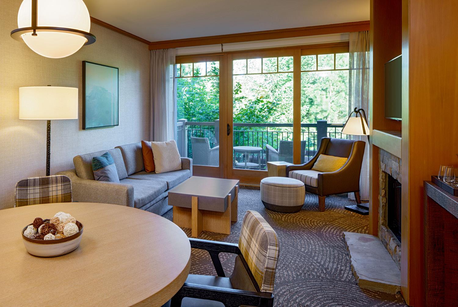 Inspired by the inviting warmth of the first floor, each room is a thoughtful and seamless blend of contemporary sophistication with the elegant and timeless style of the Pacific Northwest. With a focus on combining modern, world-class amenities with the classic Suncadia sense of ease, the updated guest rooms at The Lodge offer the