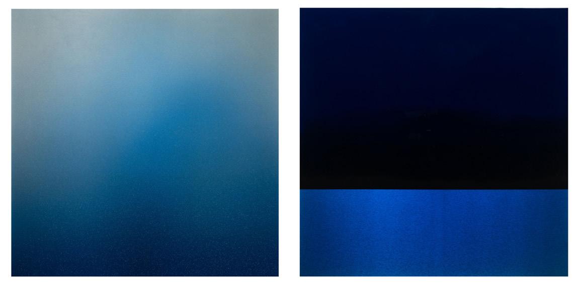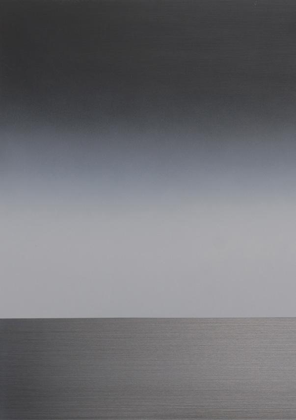 Miya Ando’s deceptively polished and seductive works belie their industrial origins. Ando paints with chemicals as well as pigments directly onto aluminum, manipulating texture and color via heat, sandpaper, dyes and other applied processes. Her methodical application of crystalline layers coalesces in horizons of transcendent hues and light. As minimalist objects, these works on metal straddle the divide between sculpture and painting; but, for Ando, painting is in service to the object her practice is undeniably material-oriented. Similar to her Japanese ancestors Bizen swordsmiths historically revered for their craft Ando’s work is rooted in the tangible, but pays distinct homage to a collective universal spirit: the physical becomes metaphysical, the ephemeral becomes infinite.