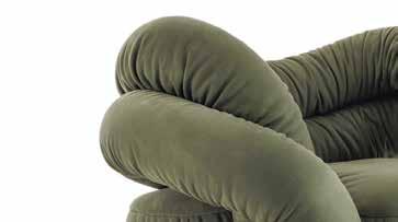 Lorentz offers modular elements of different sizes (base, backrest, armrest) joined by specific hooks with a frame in double-panelled poplar and pine, a base with inserted black painted underseat panel and padding in polyurethane foam covered in polyether thermally bonded onto a polyamide velveteen backing. Backrests, armrests and seat cushions with padding in differentiated densities are covered with a mat in goose down, stitched into separated compartments. The upholstery is removable by zippers and Velcro fastenings. Black aluminium feet with black PVC tips are height adjustable.