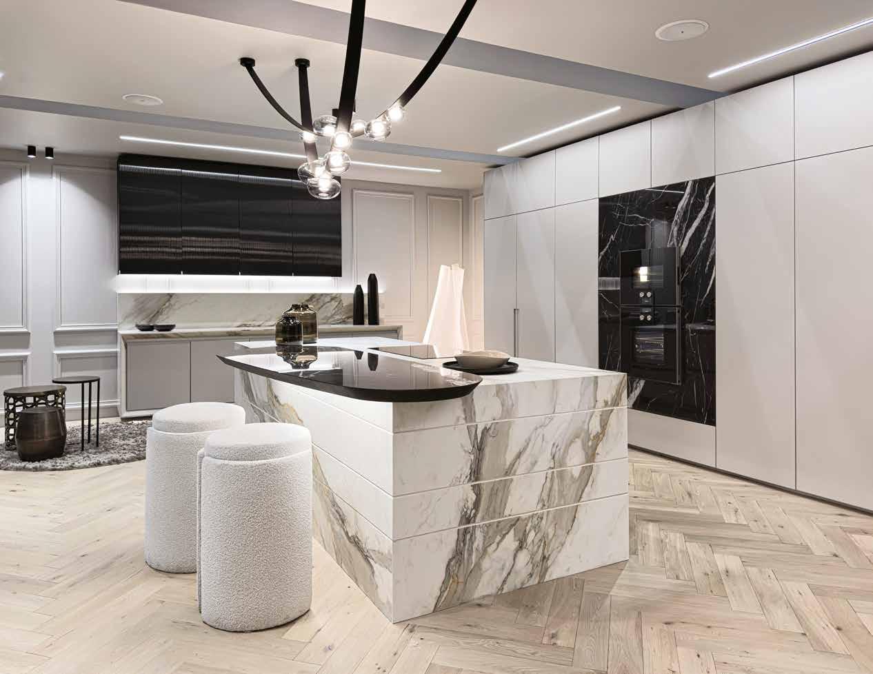 blu_line focuses on kitchen architecture that showcases levels, depth and touch materials.