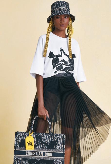 The six-piece capsule collection features a cotton T-shirt, entirely produced in South Africa, and iconic Dior designs such as the Diorcamp boot and Dior Book tote fashioned in Dior Oblique fabric paired with Magugu’s signature sisterhood logo and bright-yellow accents. dior.com