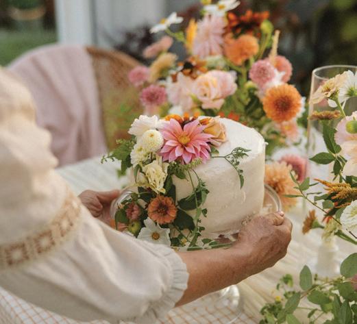 Rudman’s greenhouse soaks up a summer evening on the Flourishing Time property. Photo by Liz Rudman Photography ABOVE Flower farmer and