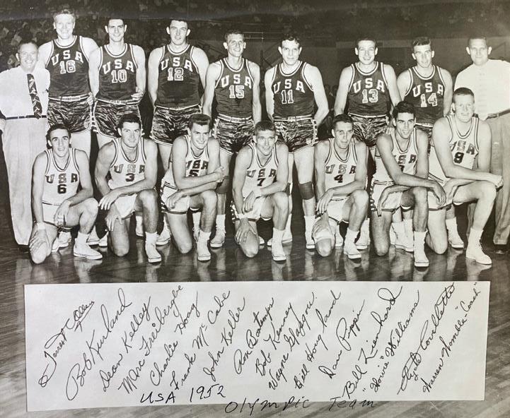 defense, helping lead Kansas to 15 consecutive wins. The team captured the NCAA title with a record of 28-3 (Allen’s first title in 35 years at KU). Seven of KU’s top players— Lovellette, Bob Kenney (All-Big Seven), Hougland, Dean Kelley, Bill Lienhard, Charlie Hoag and John Keller—were all on the team and, after defeating NIT champion LaSalle in the U.S. Olympic Playoffs, went on to win the gold medal during the 1952 Olympics in Helsinki, Finland.