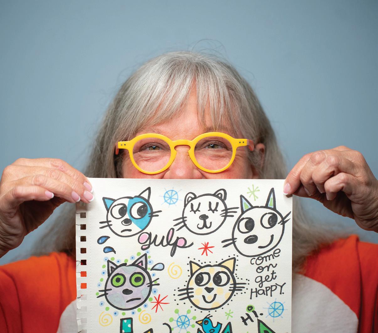 a recent sketch of a character from HAPPYtown, her illustrated world with a product line of books, cards, and more. Photograph by Nick Krug. On the Cover 7 lawrence magazine summer 2024 what’s inside?