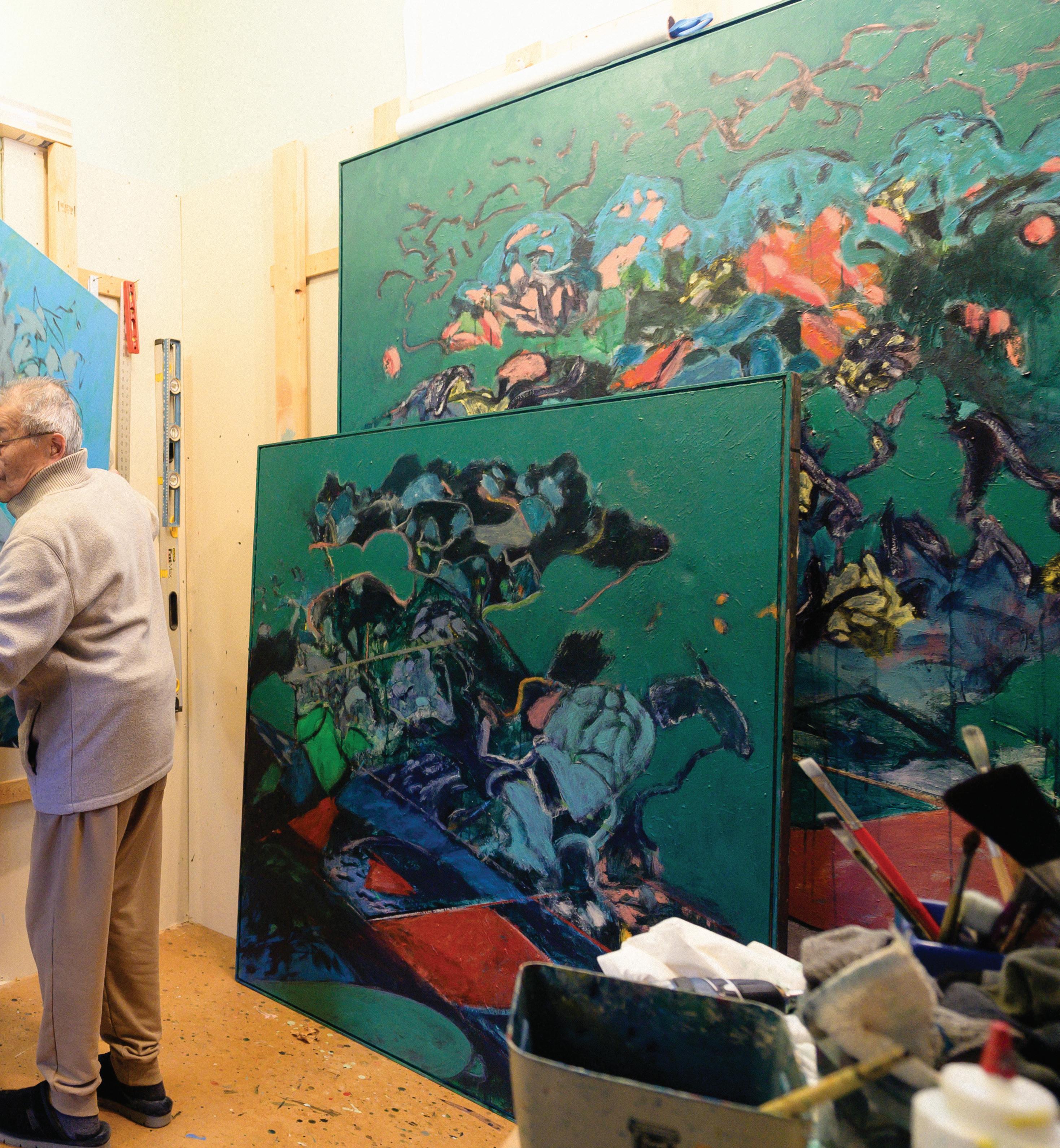 Through his years of painting, Gee has created a body of work unbound by any particular style. His creations incorporate a wide range of influences, from classical Chinese ceramic patterns to landscapes and abstractions.