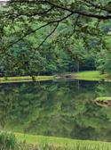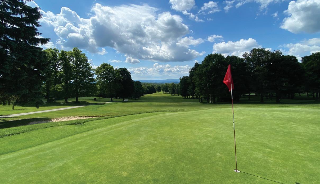 Village Drive is a well-known route within Seven Springs. Making a left turn just after turning into the resort at the waterwheel leads visitors along a meandering drive up to the top of the mountain. Just before the ascent begins, visitors are treated to a lovely scene they’ll remember for years to come as the road passes between expansive fishing ponds with an eyecatching waterfall in the middle. The idyllic wooden footbridge across the waterfall has served as a family photo op destination for decades.