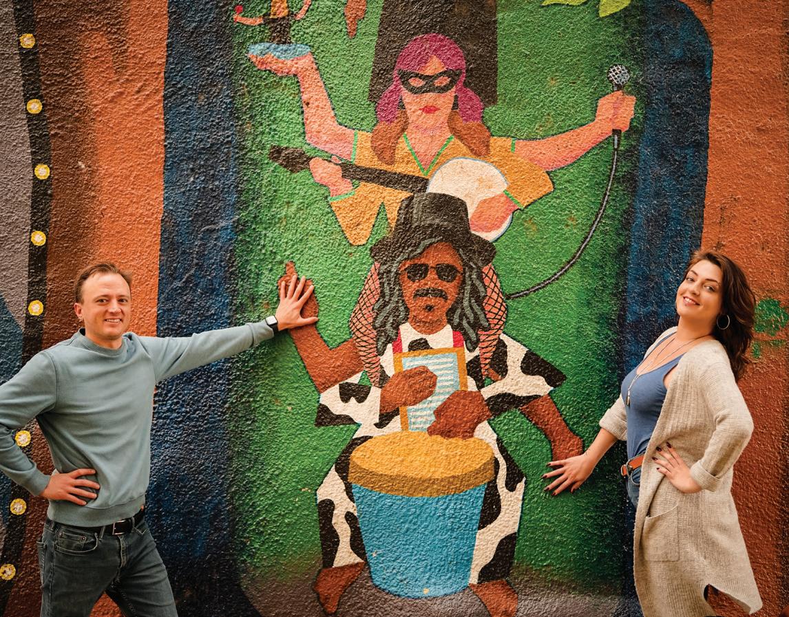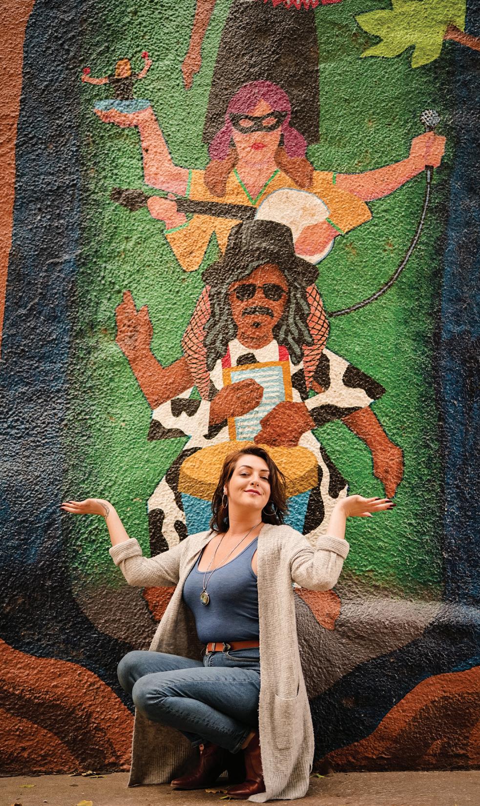 Created in 1993 by Dave Lowenstein, a Lawrence-based artist and muralist known for his collaborative community projects, this mural pays tribute to performing artists and communication mediums—which would now include a selfie. Given that theme, this is a perfect spot to capture an image of yourself with any of the three mural sections.