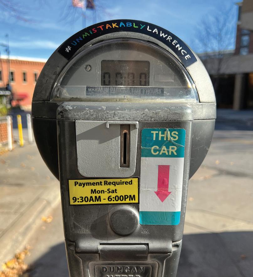 Metered parking is available Downtown, but the city also offers several free or longterm options within one block, including two covered garages with 2-hour-free and 10-hour-meter spots on the 700 block of Vermont Street and the 900 block of New Hampshire Street. There are also several 2-hour-free, 2-hour-meter and 10-hourmeter coin-operated outdoor parking lots available along Vermont, New Hampshire and Rhode Island streets, between the 600 and 1200 blocks. Pay by coin, or with the Lawrence parking apps. Info: https://lawrenceks.org/parking