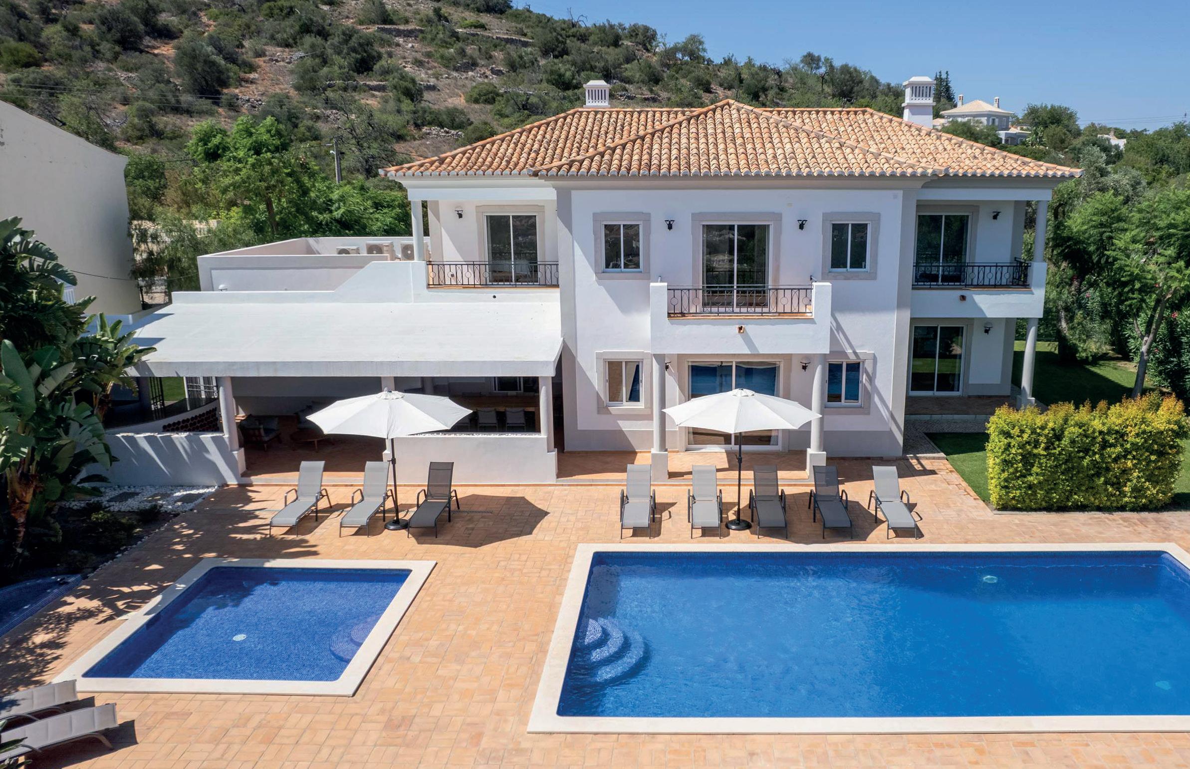 Villa Hayley is a stunning linked villa of contemporary design, centrally situated in the renowned golf resort of Vilamoura. This premium quality property has five ensuite bedrooms and features a private pool and a rooftop Jacuzzi.