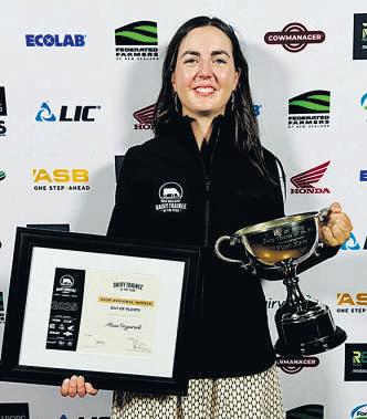 DairyTraineeoftheYear AlanaFitzpatrickis2025’sBayof PlentyDairyTraineeoftheYear.She won$6120inprizesandthreemerit awards.Shewasrunner-upinthe samecategoryin2024.