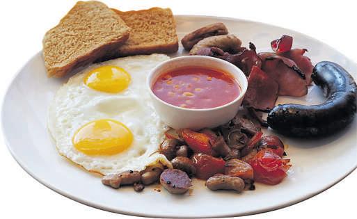 Afteranhourandahalfoftaskshewouldbe backatthedinnertabledemolishingbacon, breakfastsausages,mushroomsand/ortomatoesand raweggsonfriedblackpudding.Plus,atoastrack