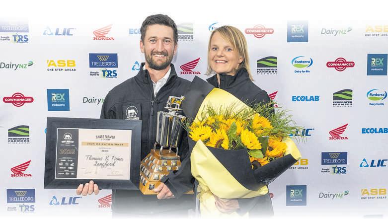 FionaandThomasLangfordwere announcedwinnersoftheregion’s ShareFarmeroftheYearcategory attheWaikatoDairyIndustry Awardsannualawardsdinnerheldat ClaudelandsEventCentreonMarch 20.TheotherbigwinnerswereZac vanDorsten,whobecamethe2025 WaikatoDairyManageroftheYear, andAlexDiprose,the2025Waikato DairyTraineeoftheYear.