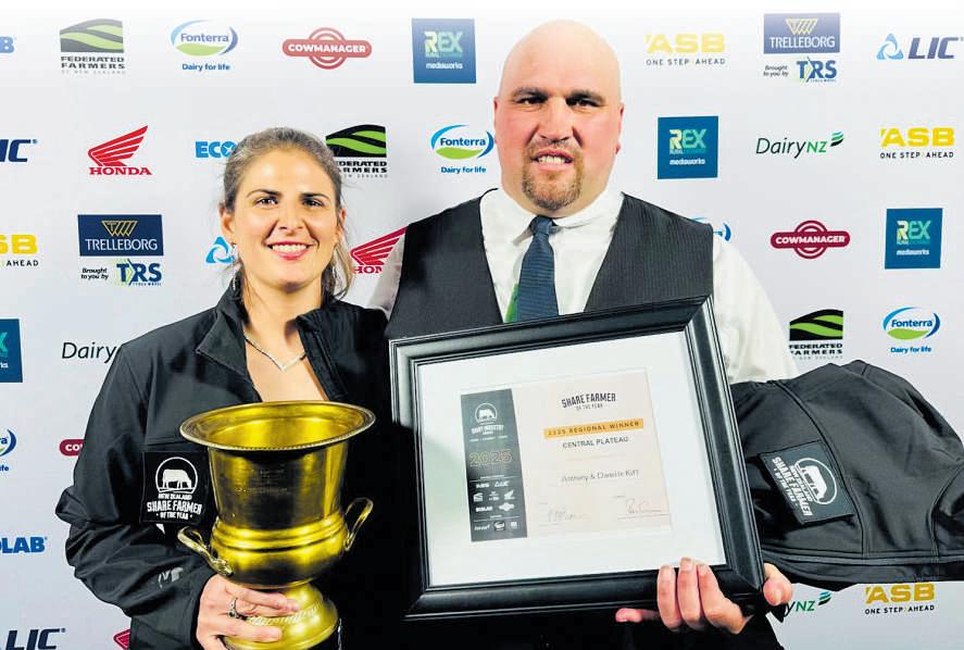 Thewinnersofthe2025CentralPlateau ShareFarmeroftheYearcategorybelieve thestrengthoftheirbusinessliesin financialandcapitalimprovementsalong withbeneficialfeedmanagementstrategies. AnthonyandDanelleKiffwereannouncedthe winnersoftheregion’sShareFarmeroftheYear categoryattheCentralPlateauDairyIndustry AwardsannualawardsdinnerheldattheRydges RotoruaonMarch19.Theotherbigwinners wereJasSinghMander,whowasnamedthe2025 CentralPlateauDairyManageroftheYear,and CameronGeorge,the2025CentralPlateauDairy TraineeoftheYear.