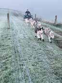 Our conversation is interrupted by rst one, then three, then all 16 huskies lifting their noses to the air and howling. “It’s a howl up,” says Taniya,