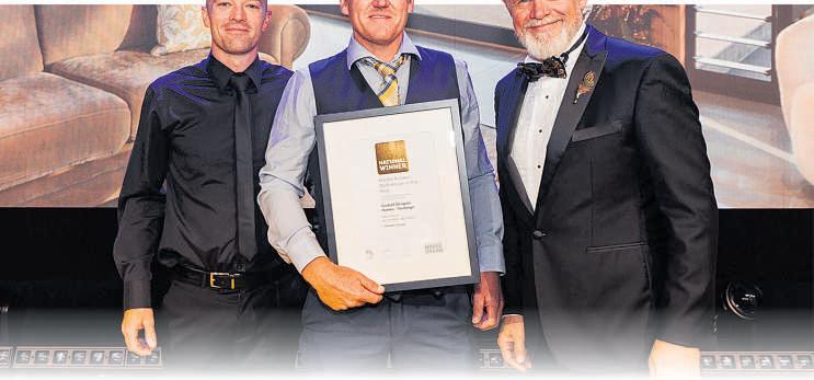 Sam Pulis and Matt Gudsell with their certificate and a Master Builders representatiive at thhe awardds.