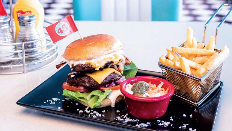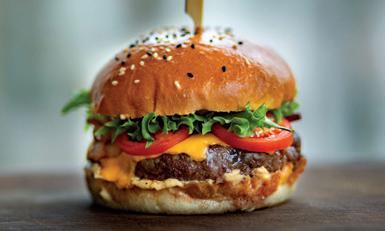 • Kalvfärsbiff med mild pepparsås, potatis, gelé och sommargrönsaker