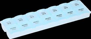 7 DAYS DIMENSIONS: L21.5 X W6.5 X D2.5 CM 2 COMPARTMENTS PER DAY AM-PM