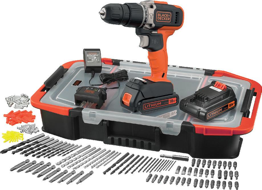 included: 2 x 18V 1.5Ah battery, 1 x 400mA charger, 1 x click and connect box, 160 x accessories
