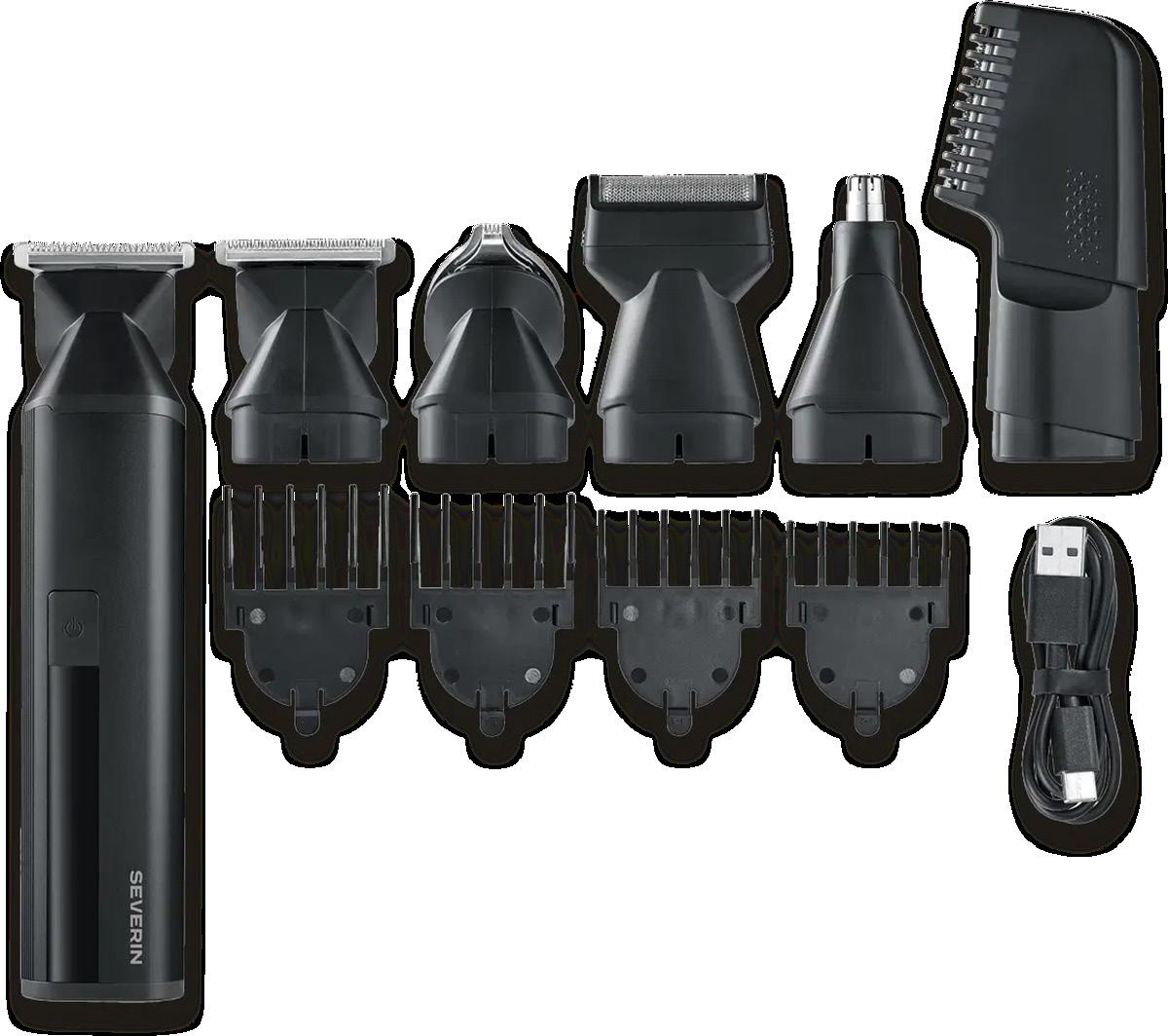 included: hair trimmer, beard trimmer, nose trimmer, foil shaver, detail & body trimmer, USB charging cable