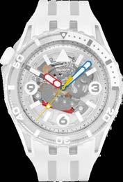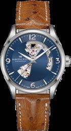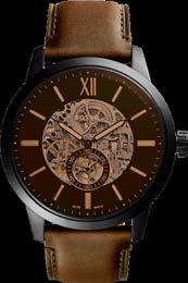 • Skeleton: The dial is partly open, letting you see the movement working inside.