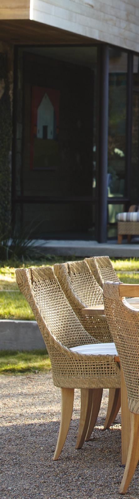 Our products are specifically designed and manufactured to withstand nature’s elements. High quality, weatherresistant materials and finishes include powder-coated aluminum, woven synthetic wicker and teak.
