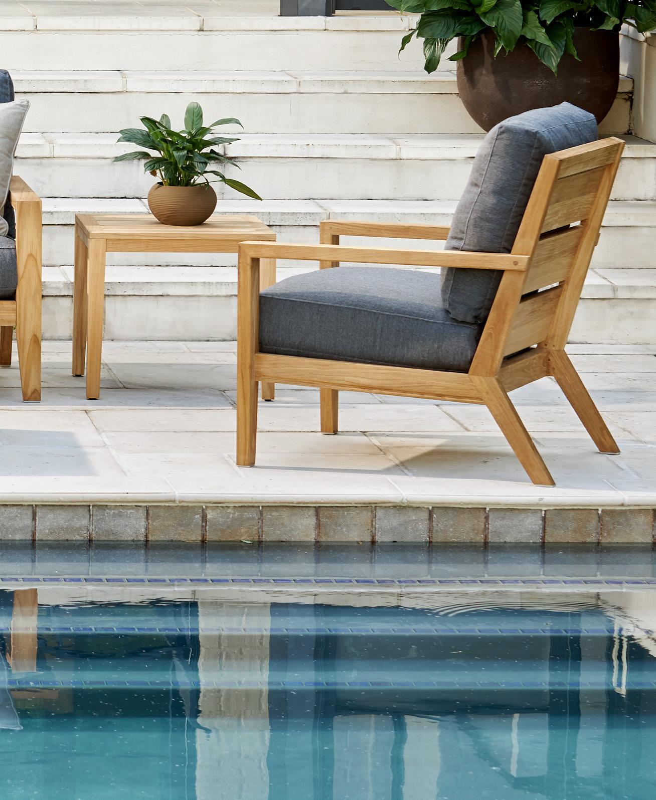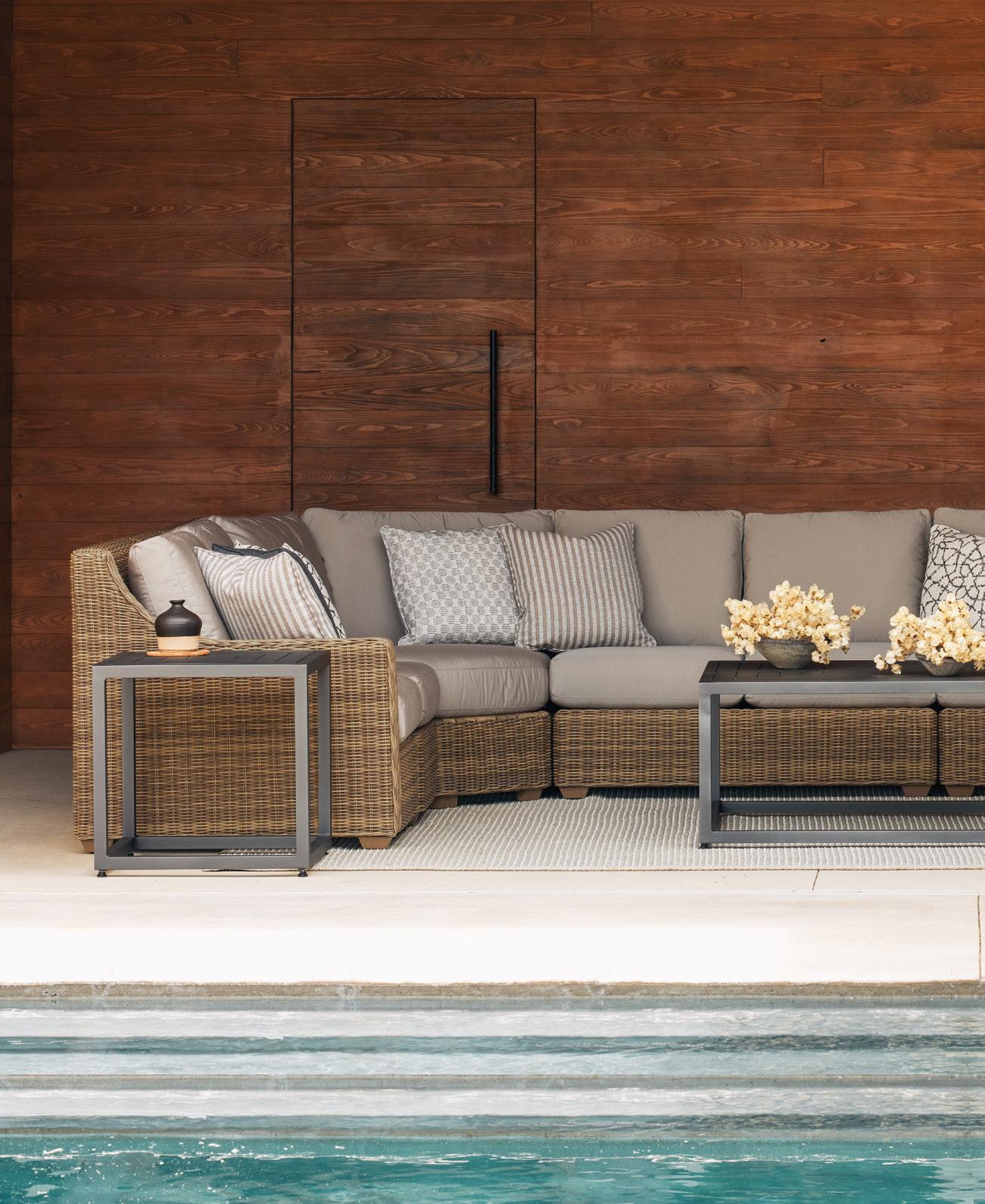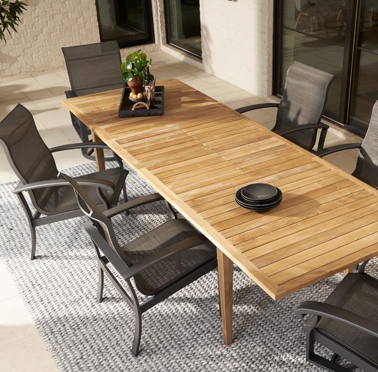 Our products are specifically designed and manufactured to withstand nature’s elements. High quality, weather-resistant materials and finishes include powder-coated aluminum, woven synthetic wicker, premium grade A teak and outdoor upholstery.