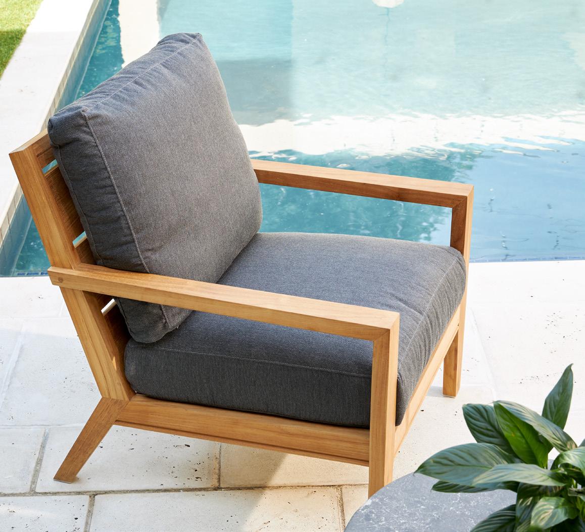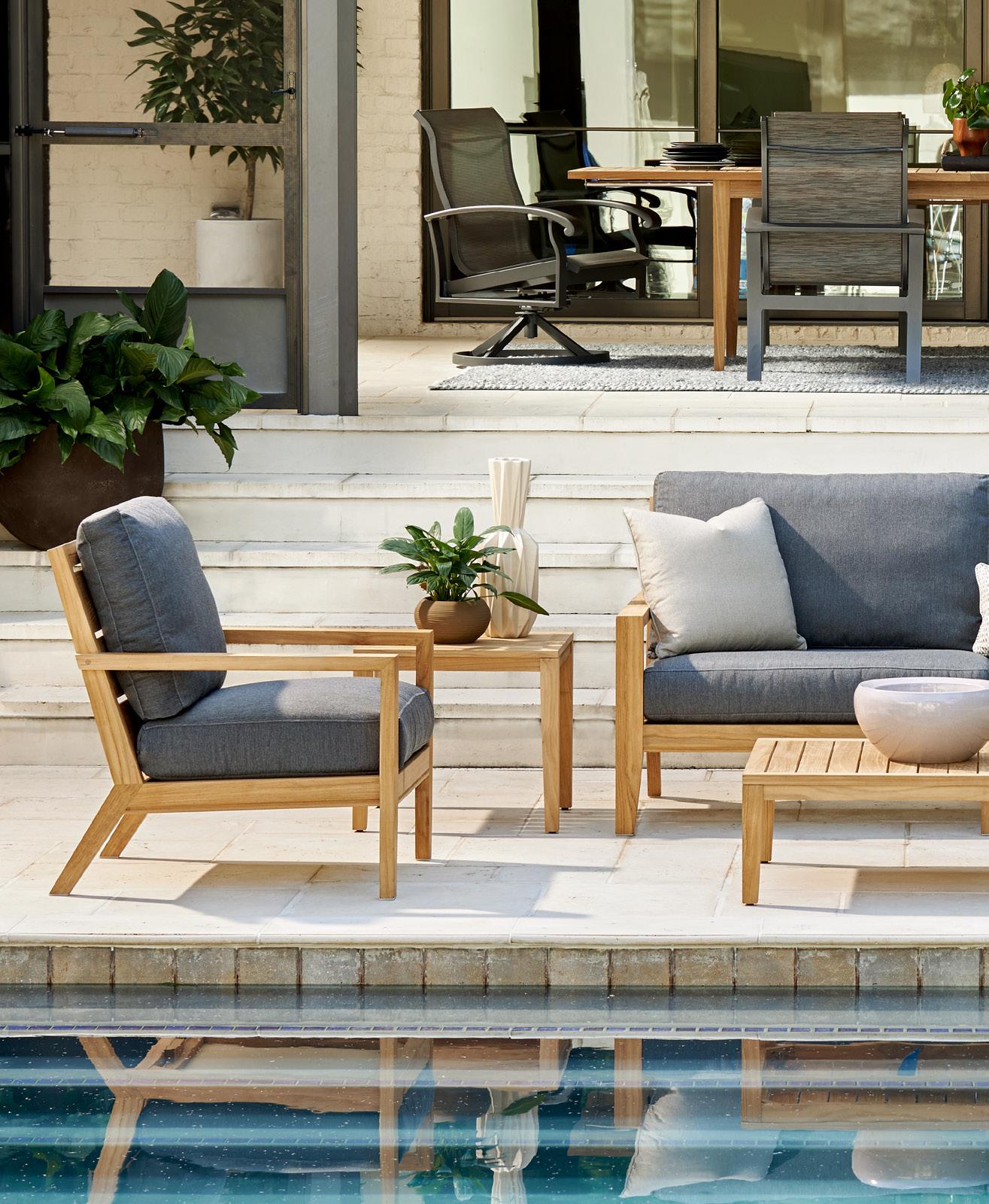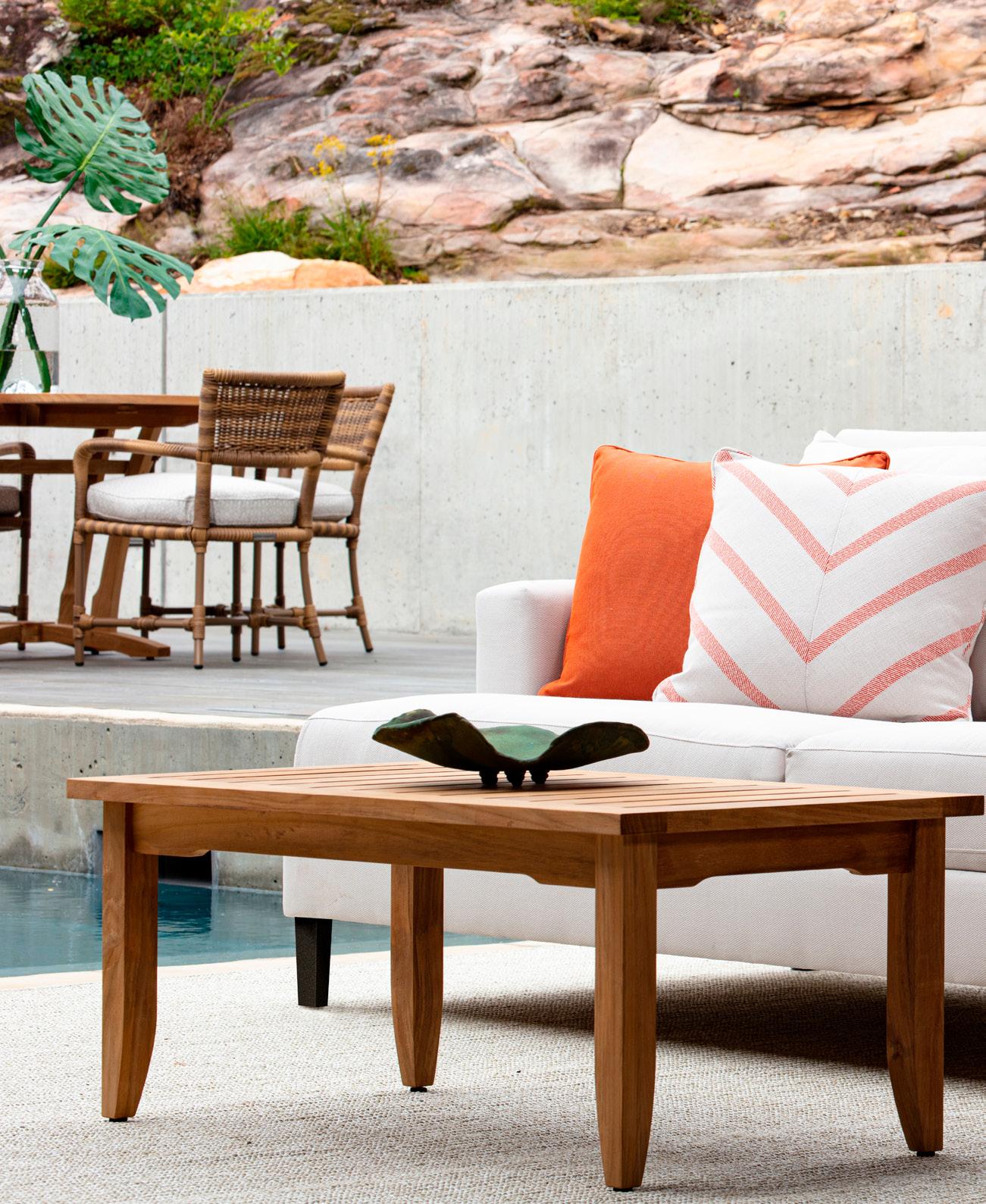 Our products are specifically designed and manufactured to withstand nature’s elements. High quality, weather-resistant materials and finishes include powder-coated aluminum, woven synthetic wicker, premium grade A teak and outdoor upholstery.