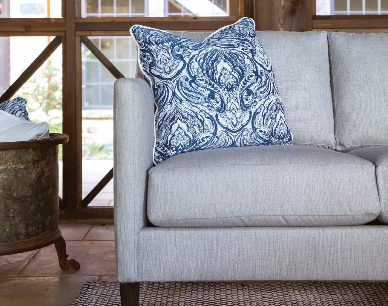 CUSHION CORE: Fiber. Optional fiber wrapped foam. CUSHION STYLE: Box border, self-welt.