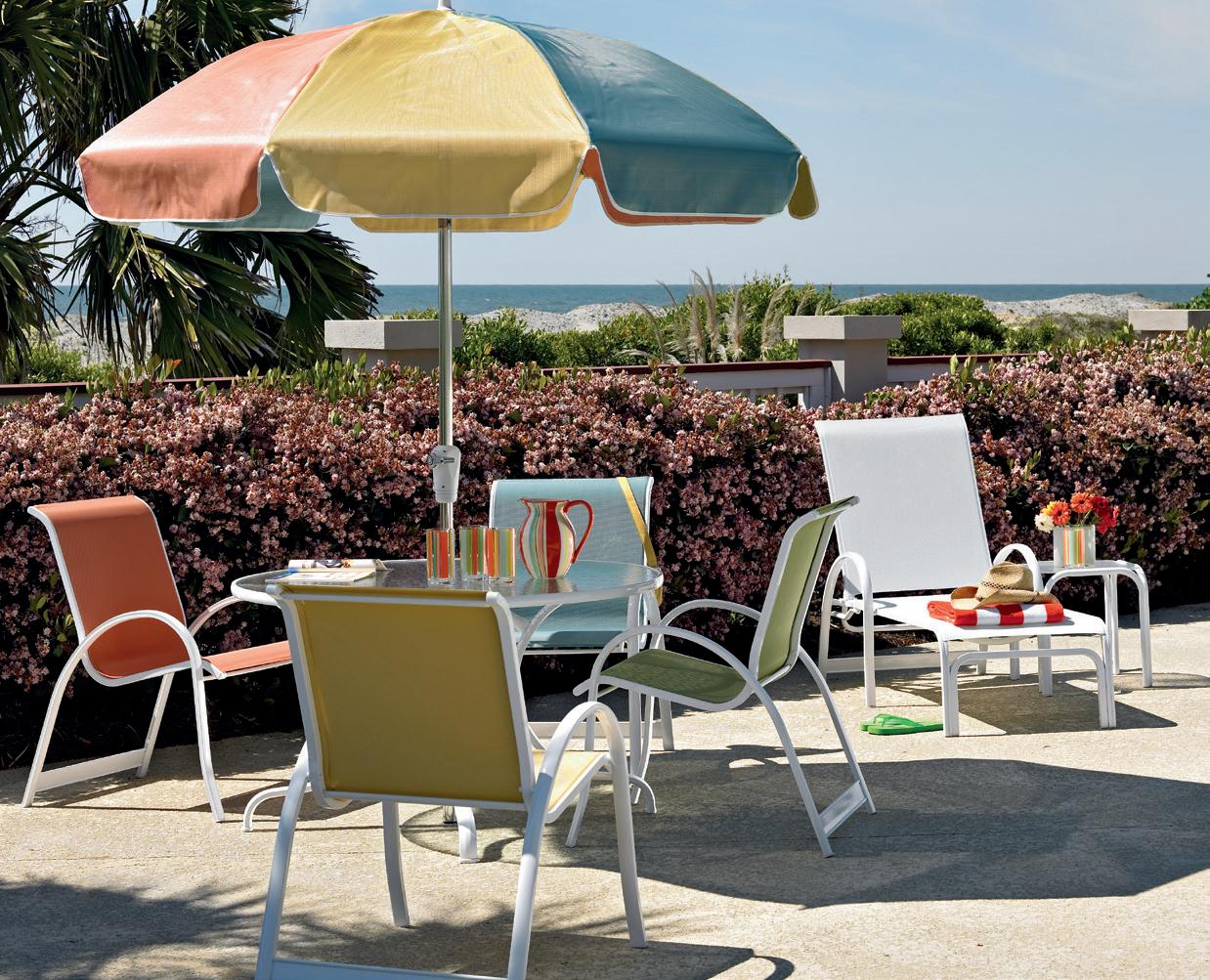 Sunbrella ® Rain Fabrics available on all Cushion and all Padded Sling Collections. (some exclusions apply)
