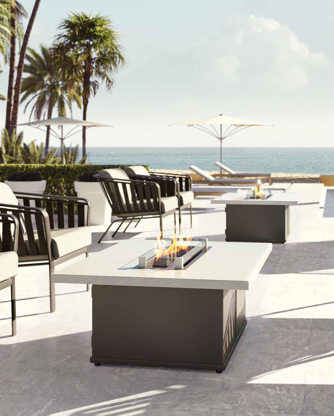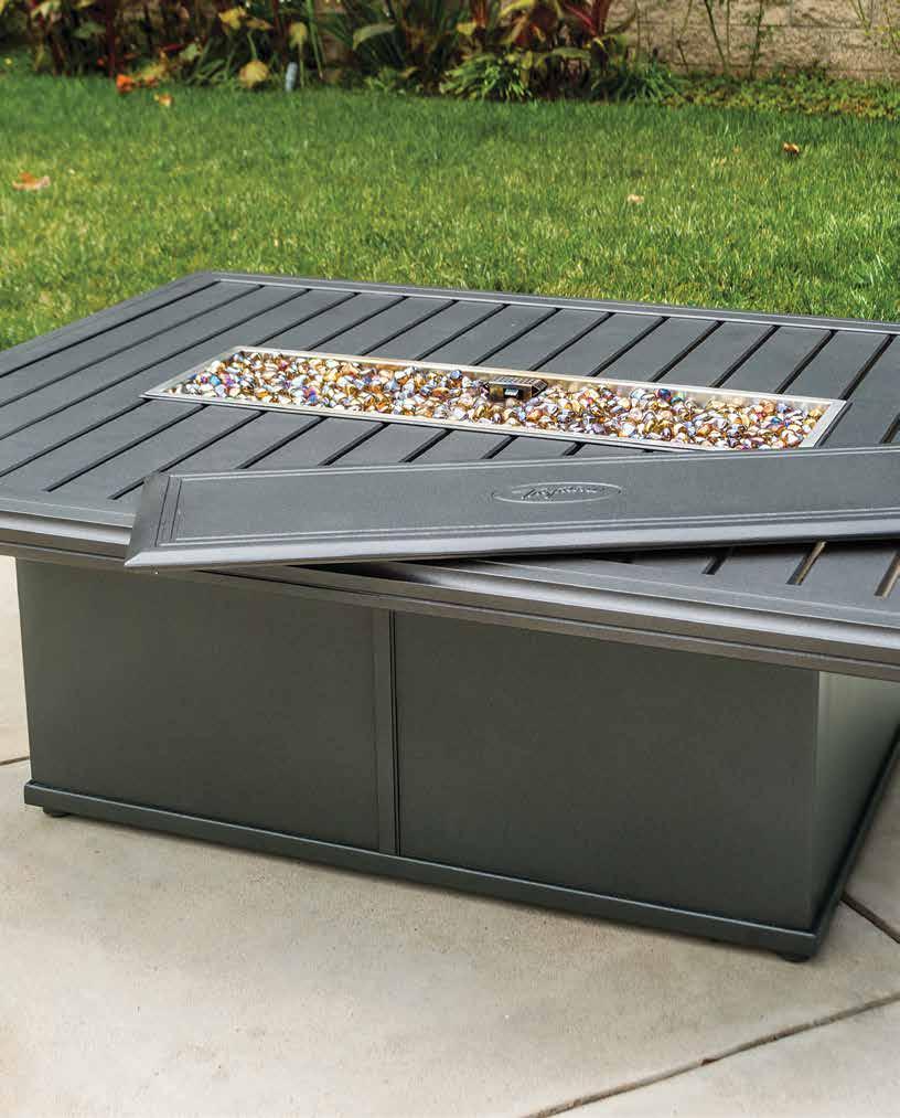 warning for tropitone® fire pits: Never leave a fire pit on when unattended. Never operate a fire pit indoors or in an enclosed space.