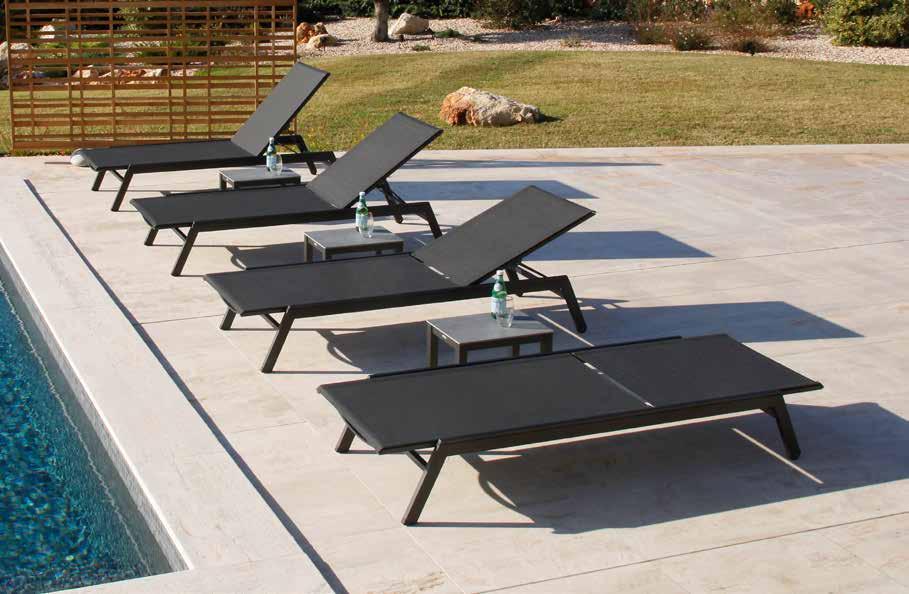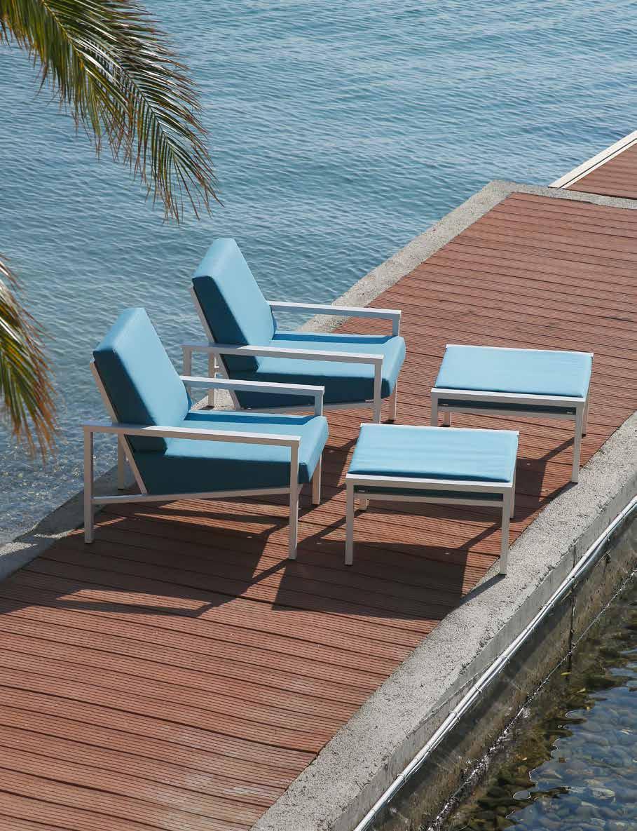 • Seating available with teak or Textilene® and Sunbrella® slings –strong, durable and mildew resistant