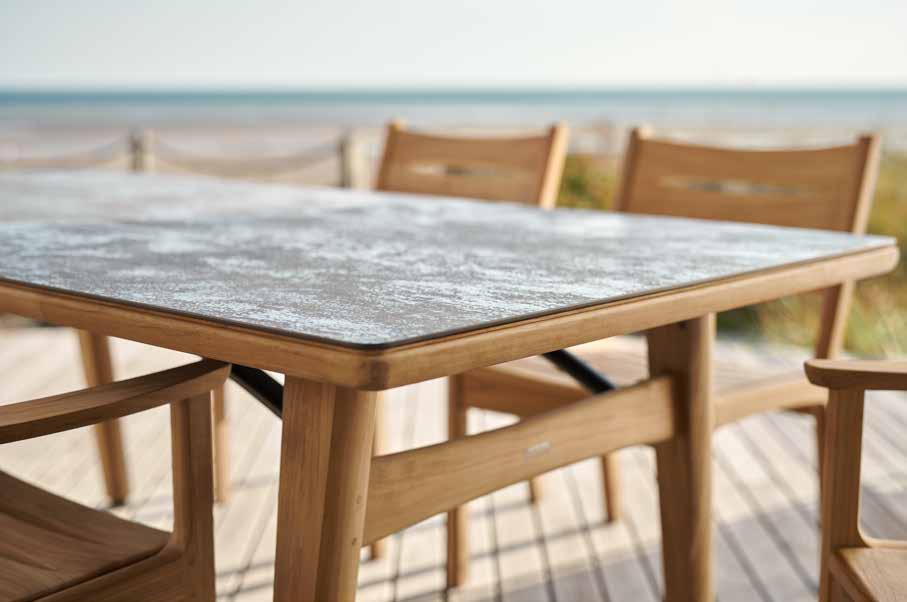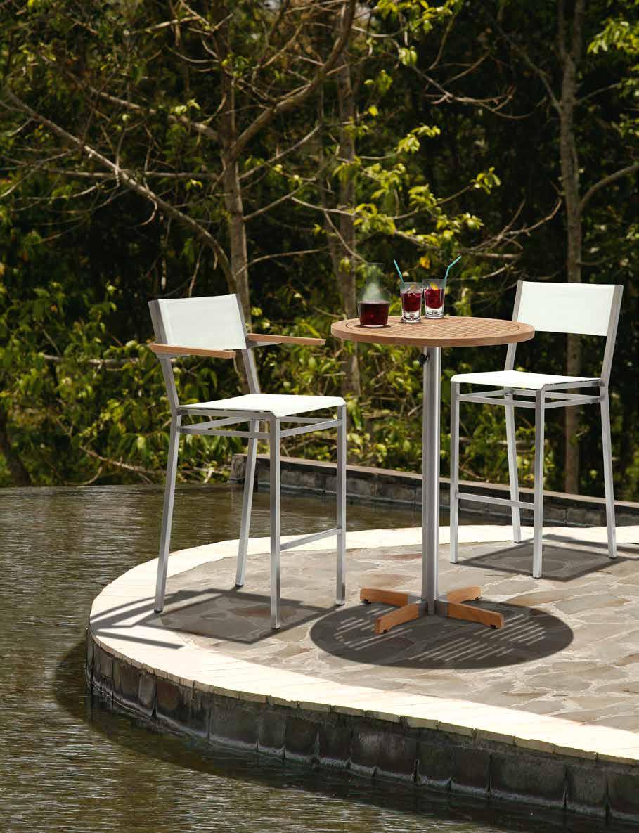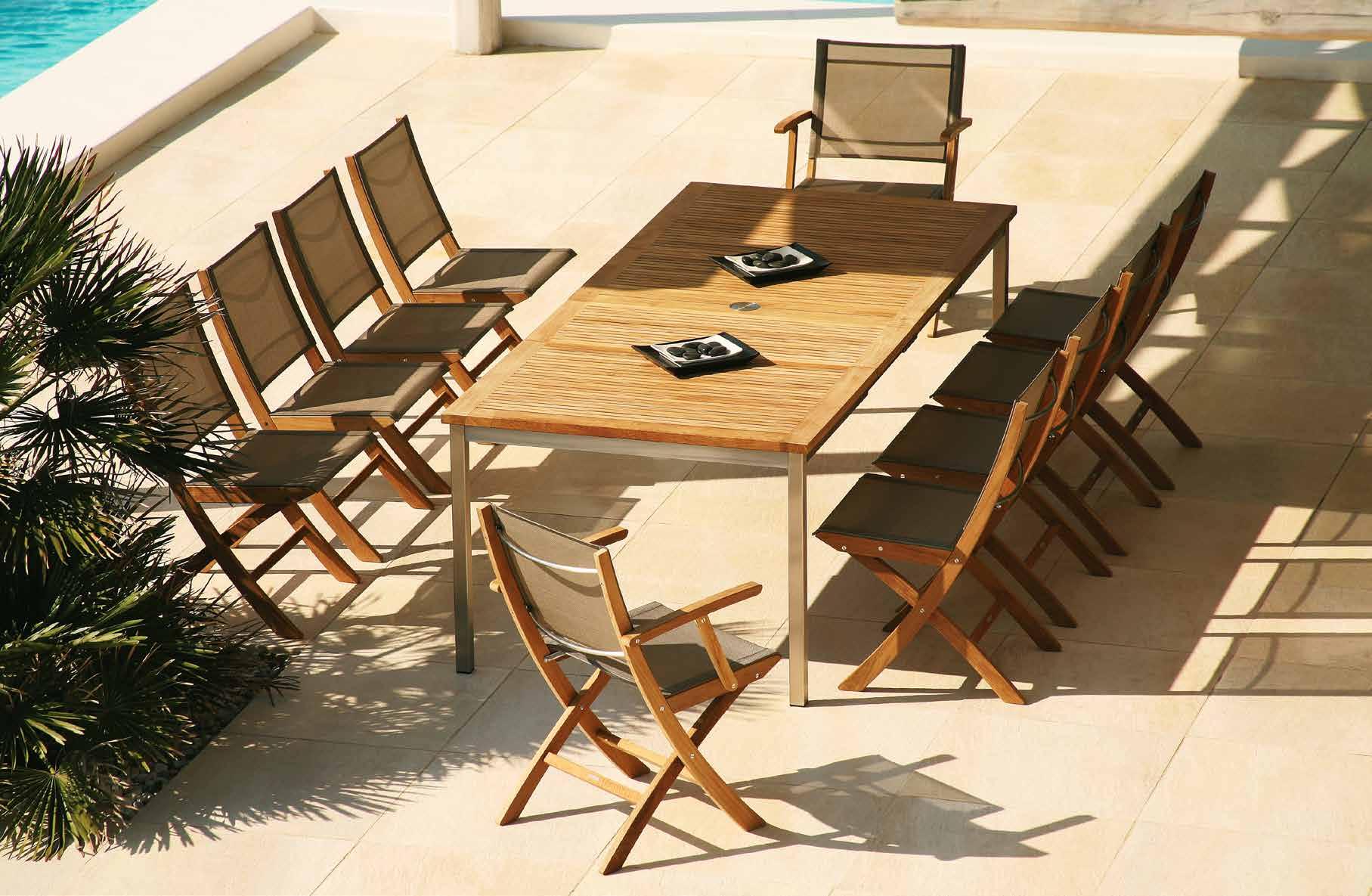 The Equinox range of dining tables and chairs has 316 marine-grade stainless steel frames with extensive combinations of Textilene® slings and teak, with an extending table top additionally available in Italian high-fired ceramic.