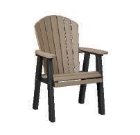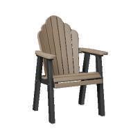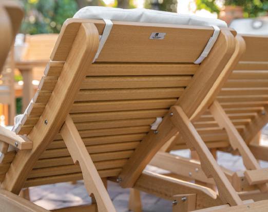 That classic Adirondack look with comfort you don't expect. You’ll notice the difference of our contoured, higher back.LEFT: Comfo Back Chaise Lounges and Round End Table (dining height) in Antique Mahogany. Seat cushions in Nantucket Linen and lumbar pillows in Rumba Canvas. Umbrella in Blend Linen. | ABOVE: Comfo Back Adirondack Chairs in Antique Mahogany on Weatherwood with Adirondack Chair Tete-a-Tete in Antique Mahogany.