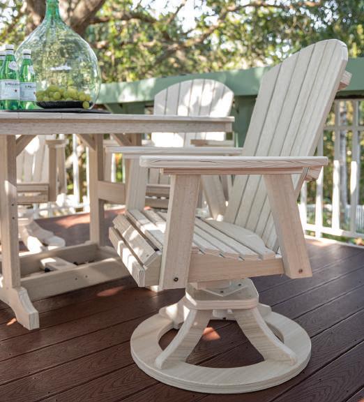 Poly furniture is made from high-density polyethylene (HDPE), a recyclable plastic that never needs to be painted or stained. It will not rot or splinter, and contains added UV protection to resist fading.