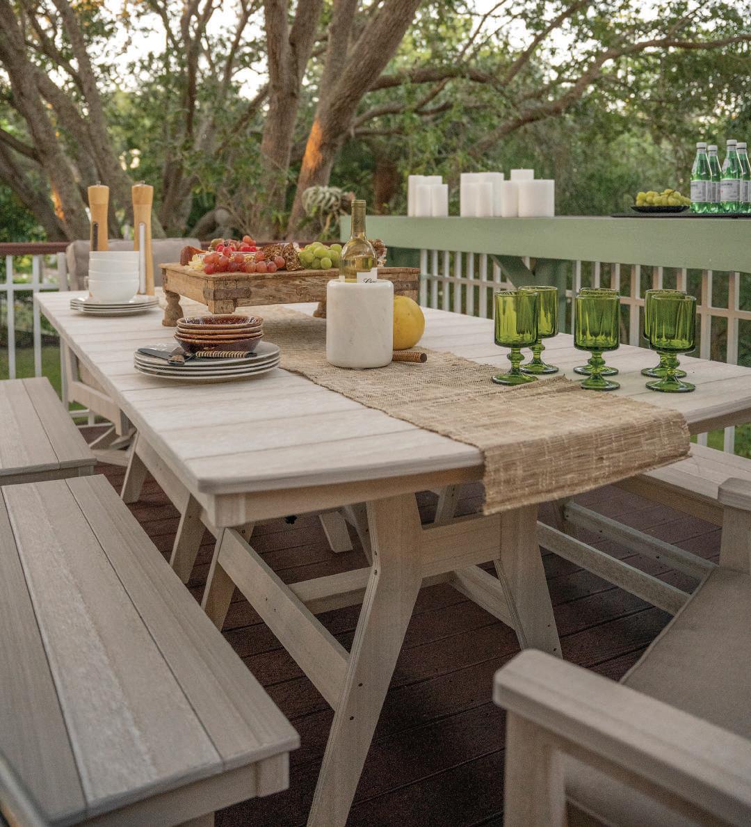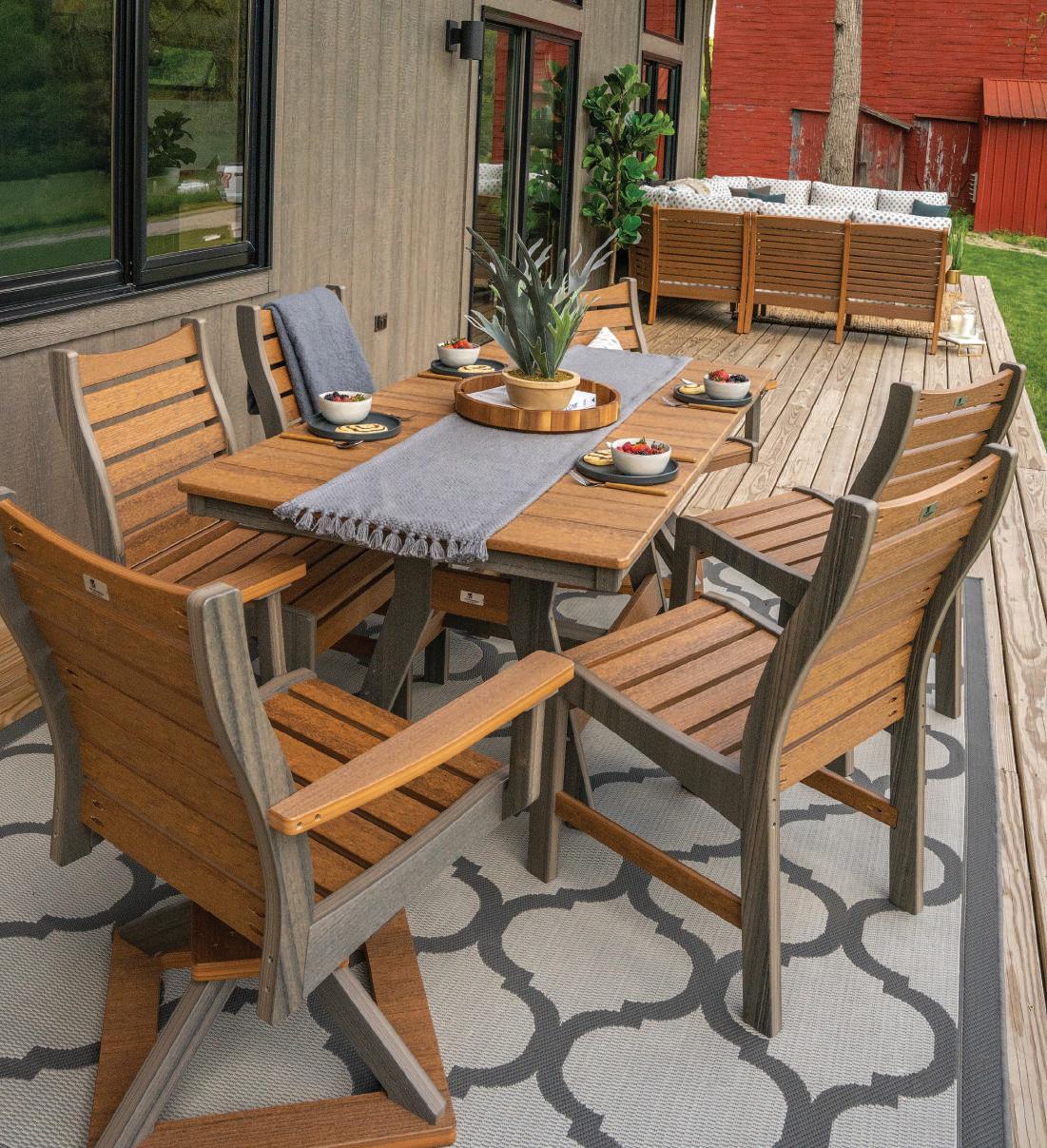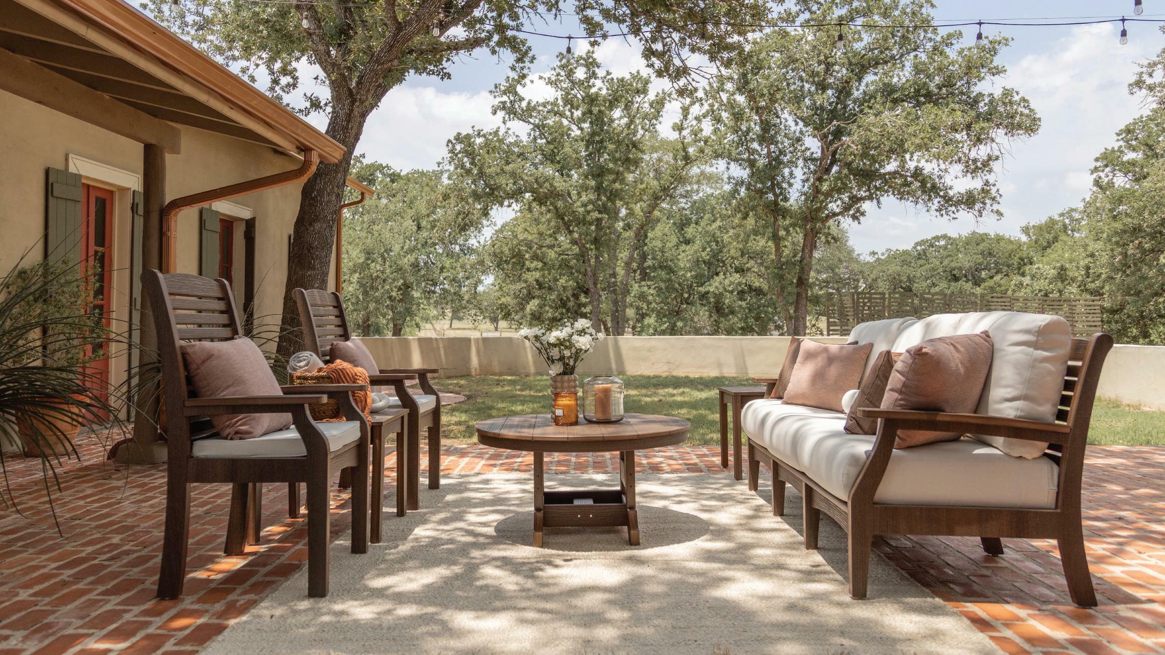 Farmhouse charm meets all-weather resistance in sturdy, traditional furniture that’s right at home.