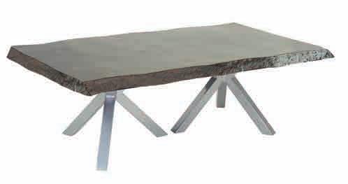 AS SHOWN: FINISH PLATINUM TEX PP MAIN FABRIC SAILCLOTH SALT G6C TABLE TOP LIVE EDGE DARK RUM WITH DRIFTWOOD R1