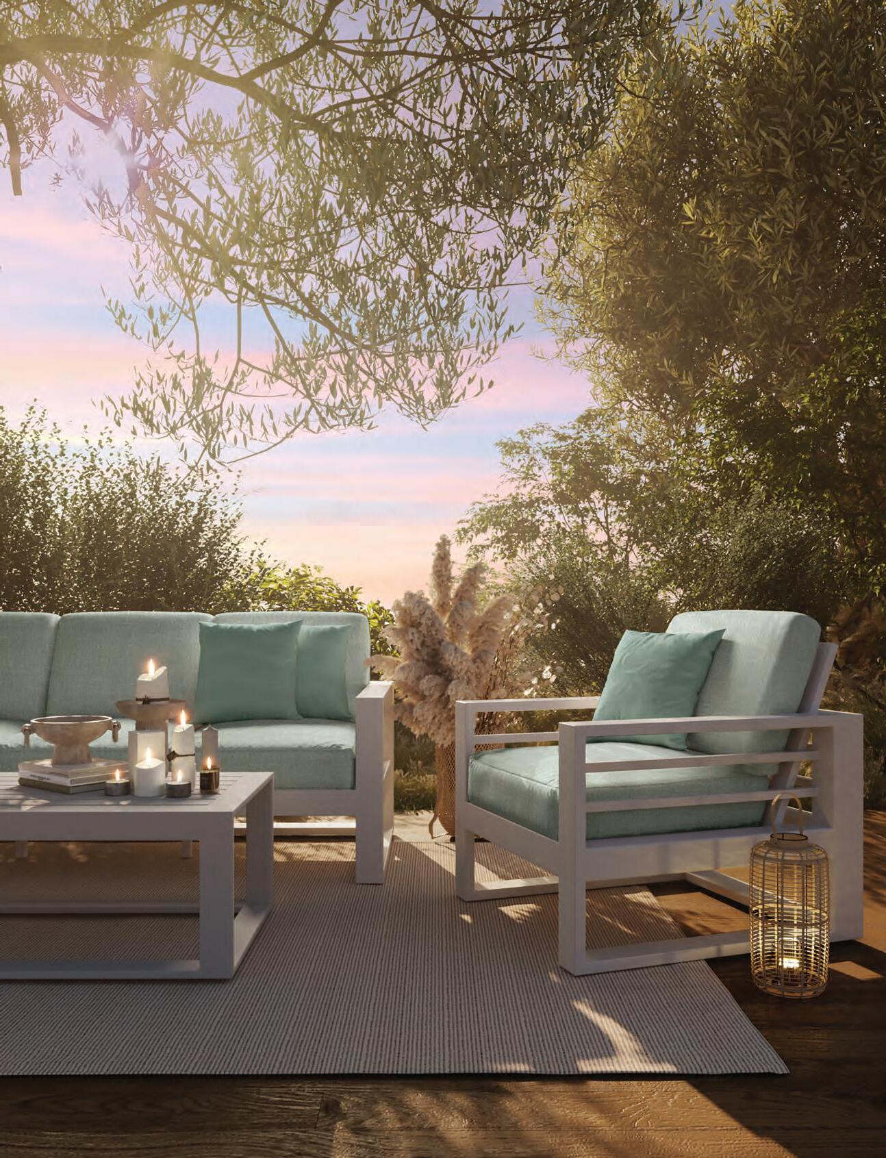 Shown: 4209 Antibes Club Chair with Natural White Cushions and 110 – 18” x 18”