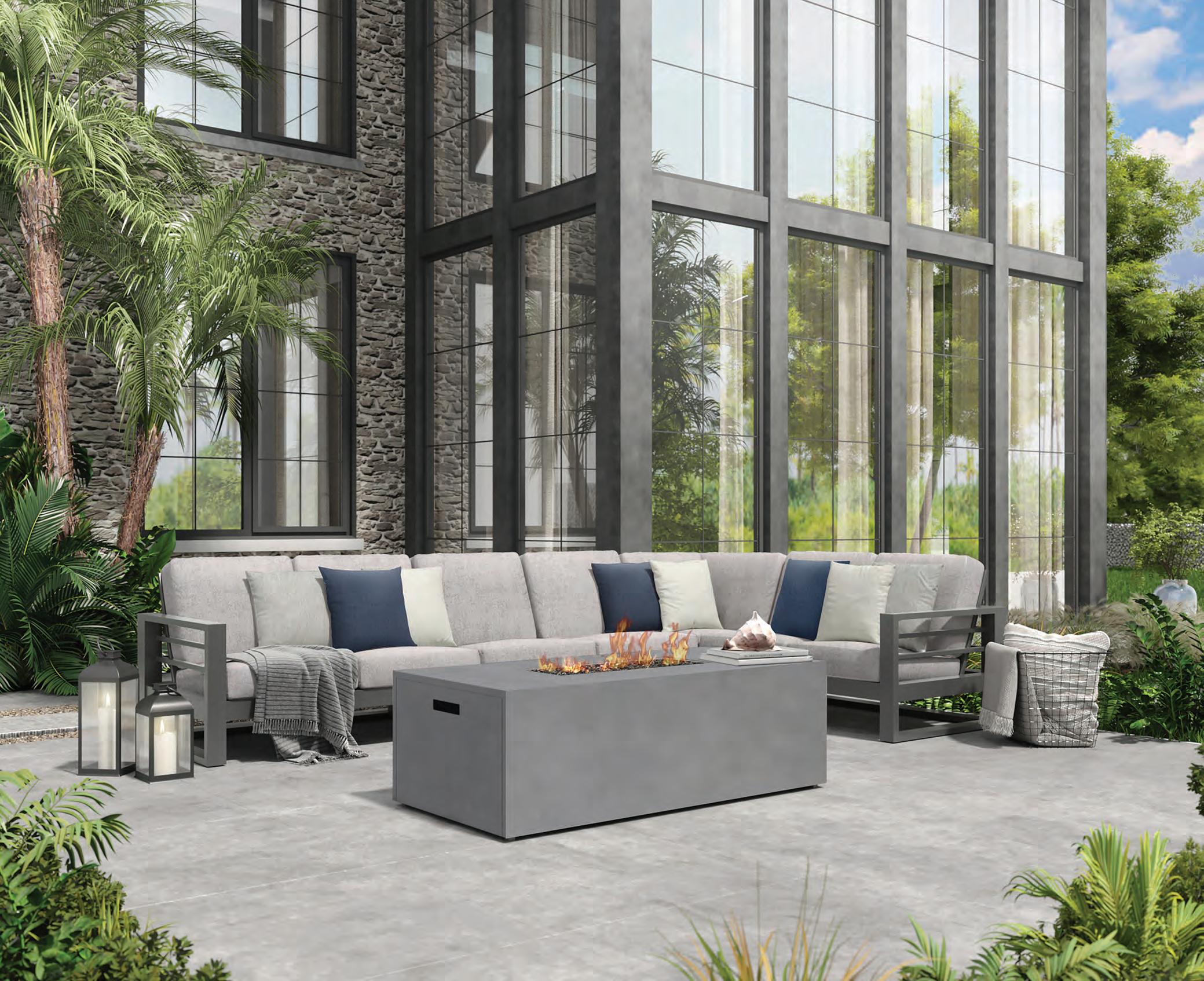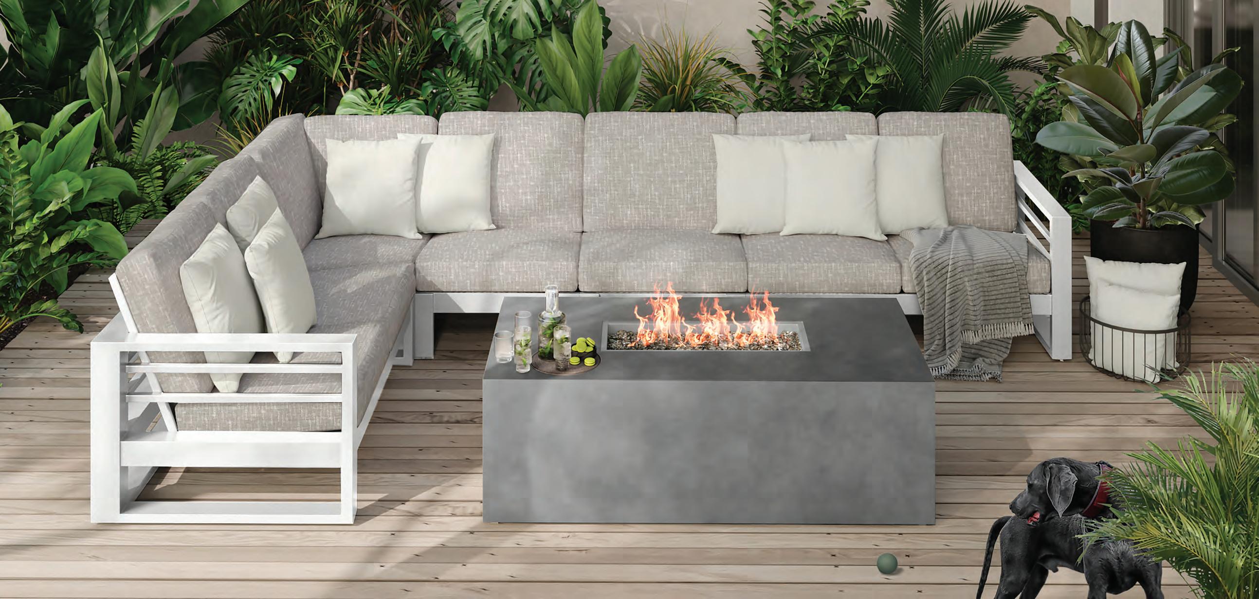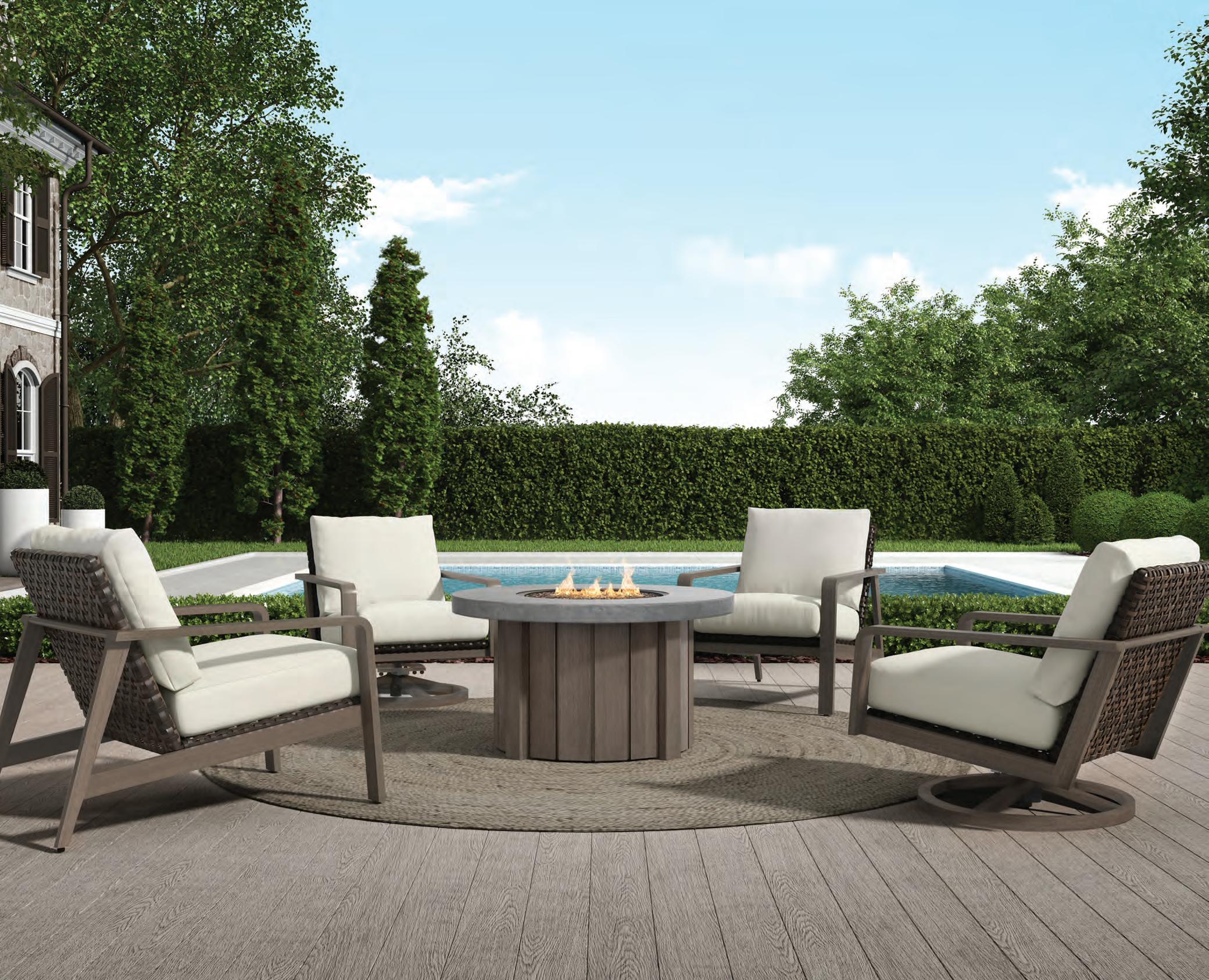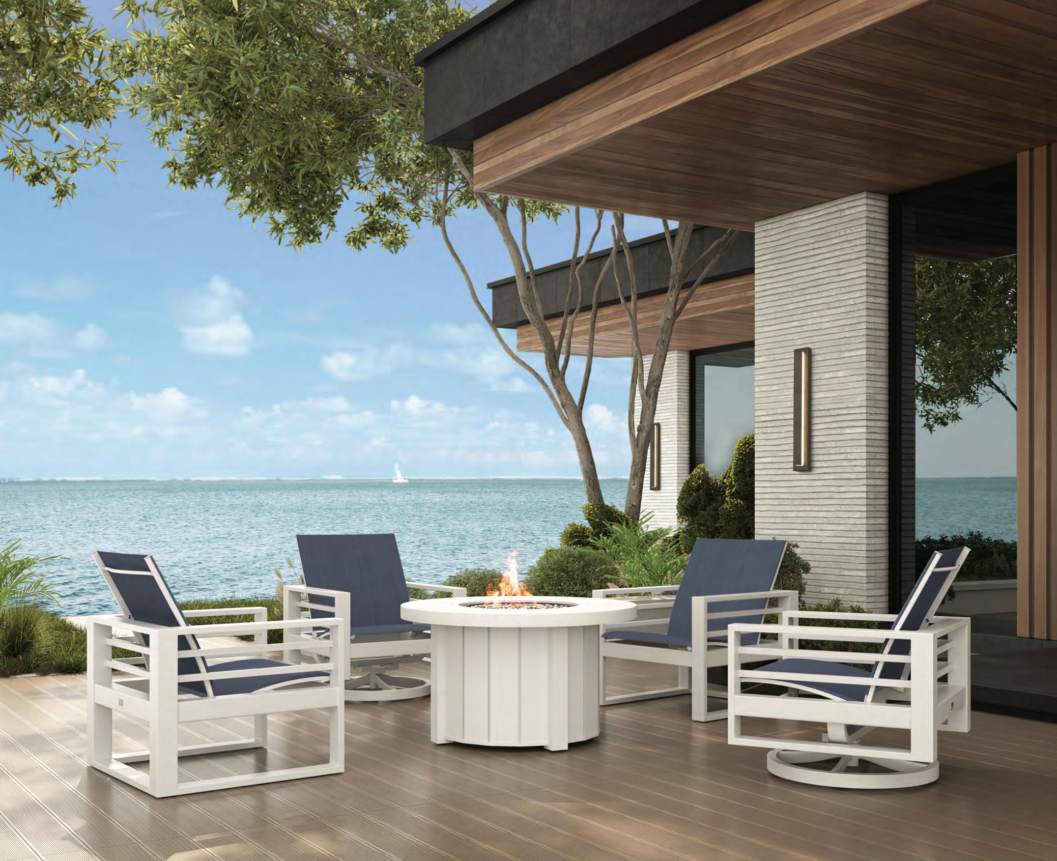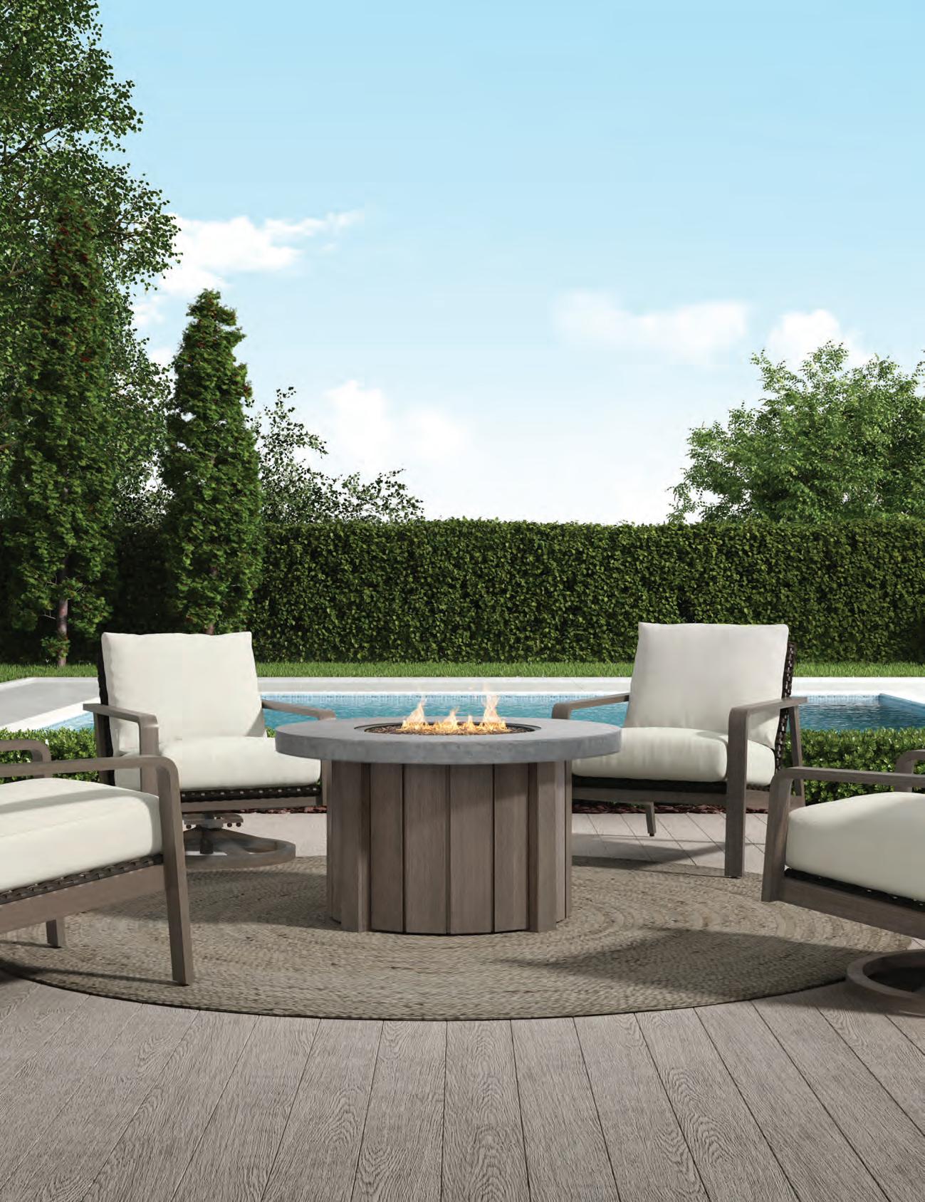 The Bellino Fire Pit Collection has been expanded to include seating tables. Featuring the same faux concrete finish, these new aluminum tables are available in coffee, chat and end tables.
