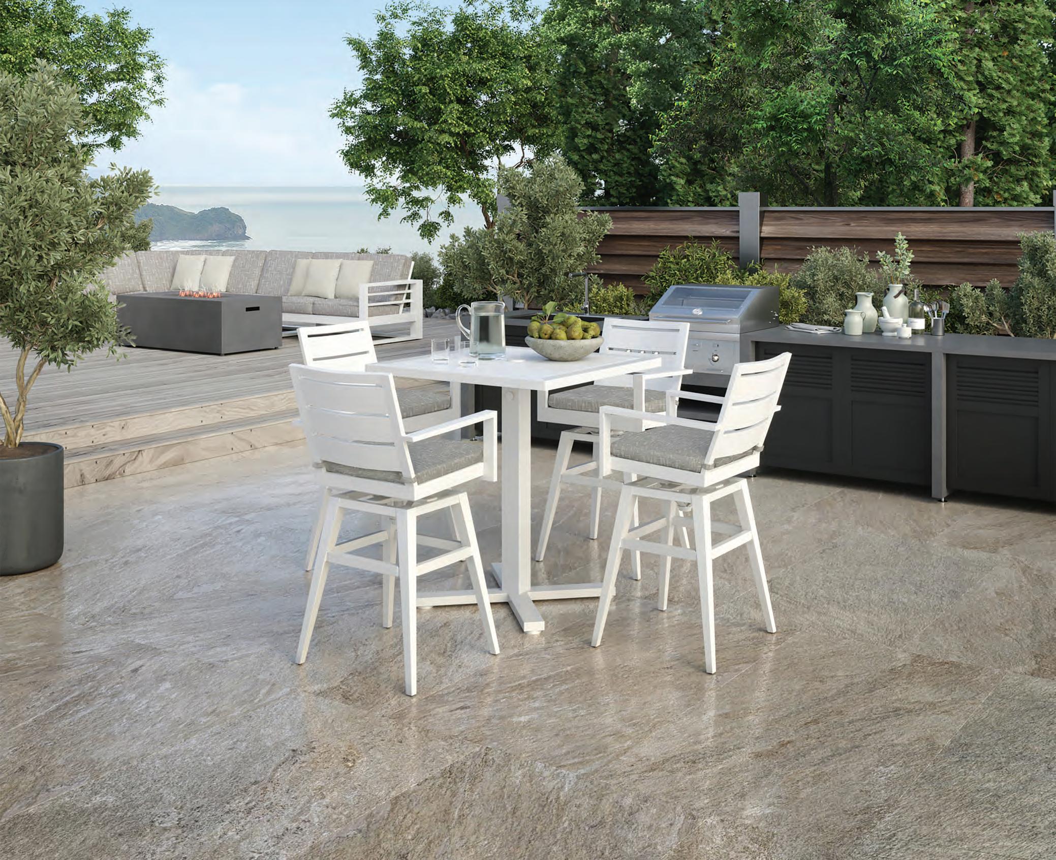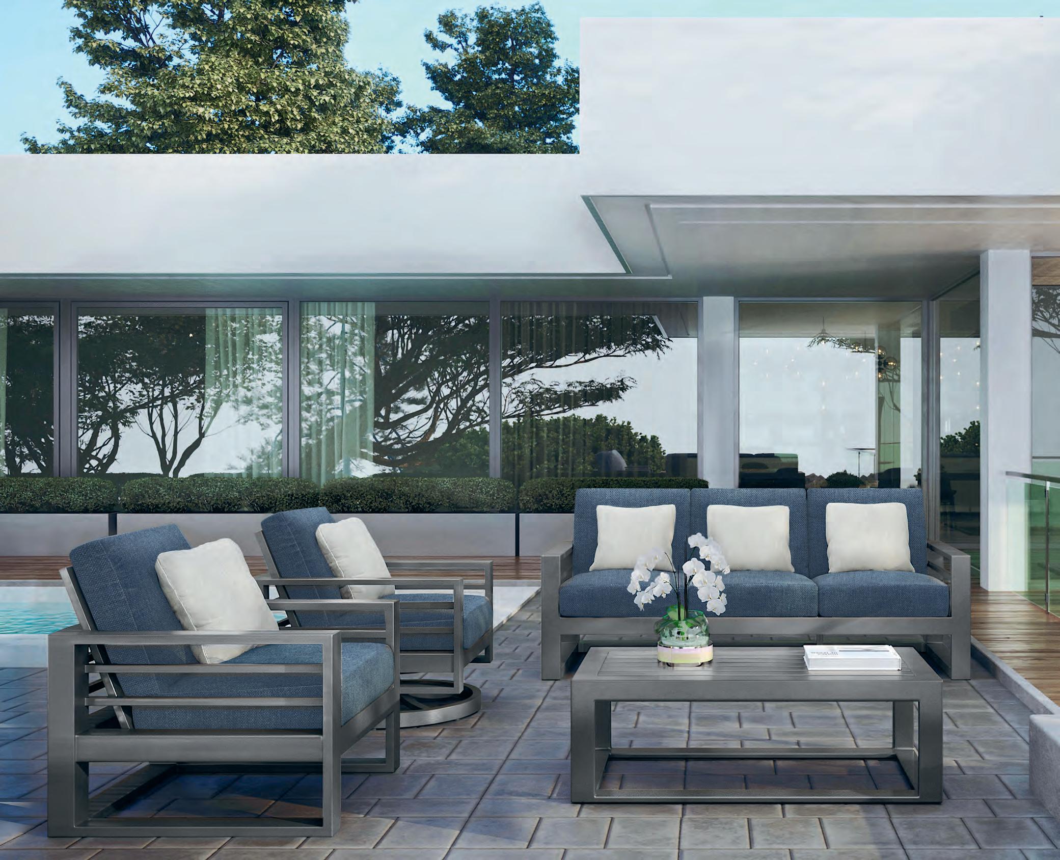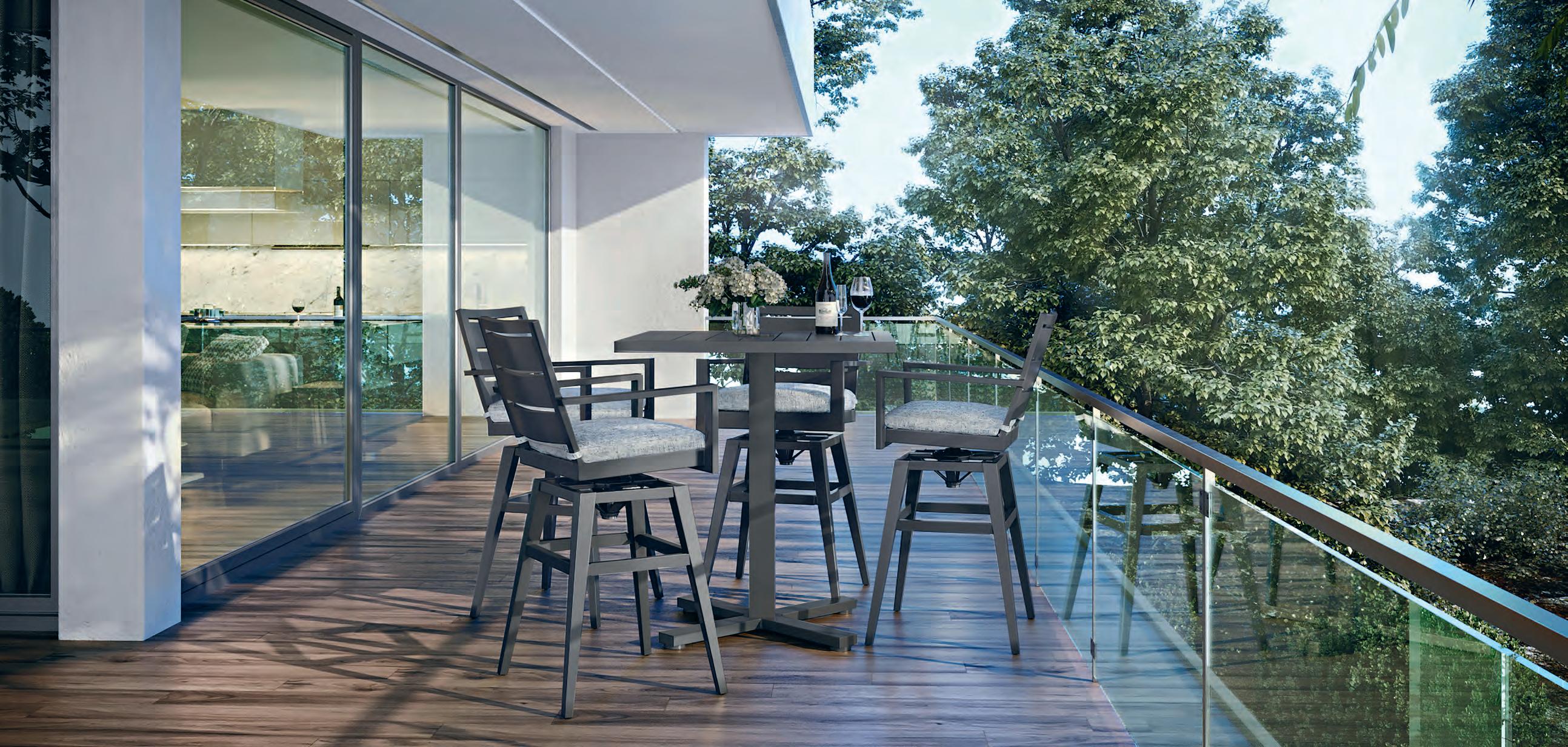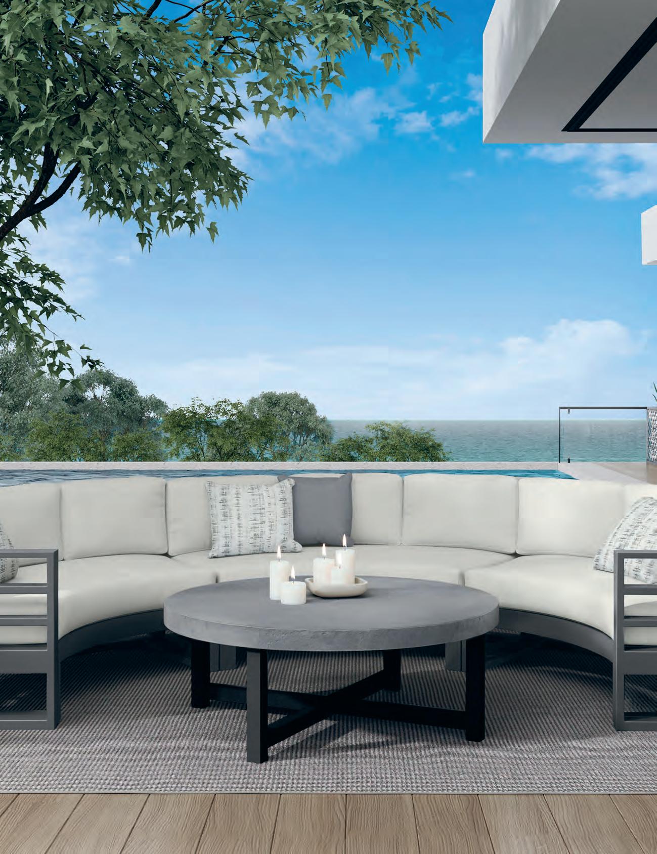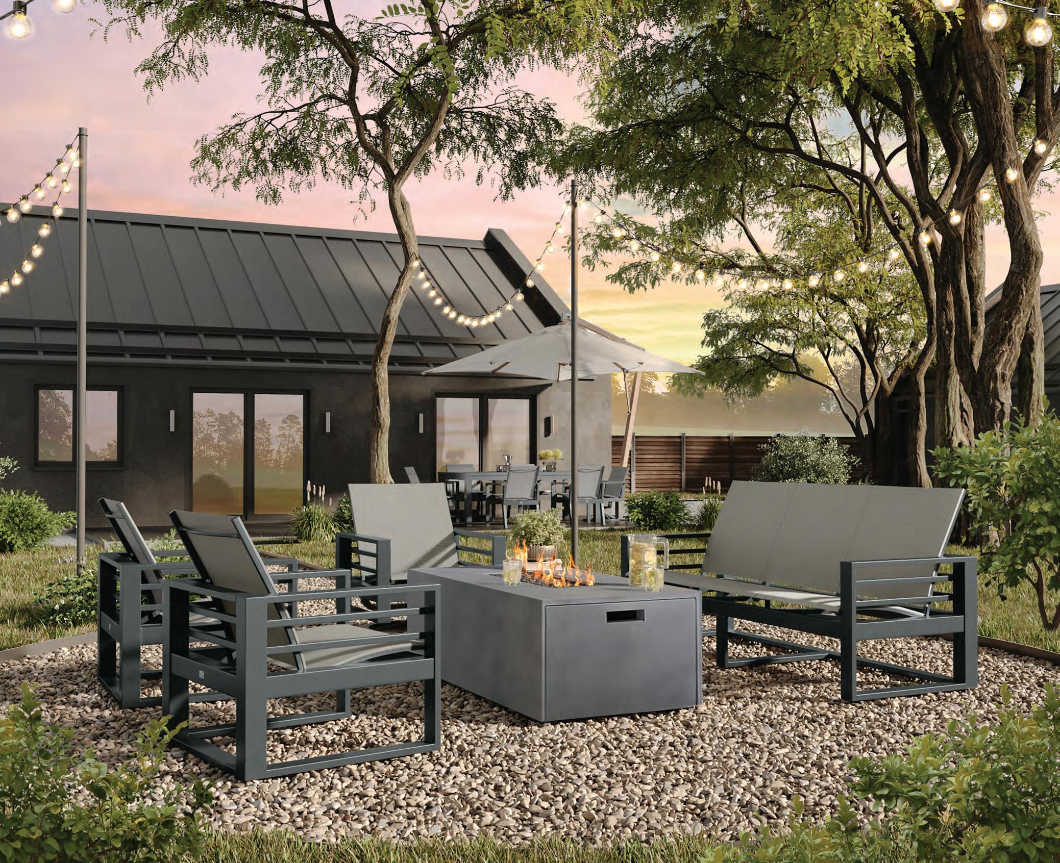 The Bellino Fire Pit Collection has been expanded to include seating tables. Featuring the same faux concrete finish, these new aluminum tables are available in coffee, chat and end tables.
