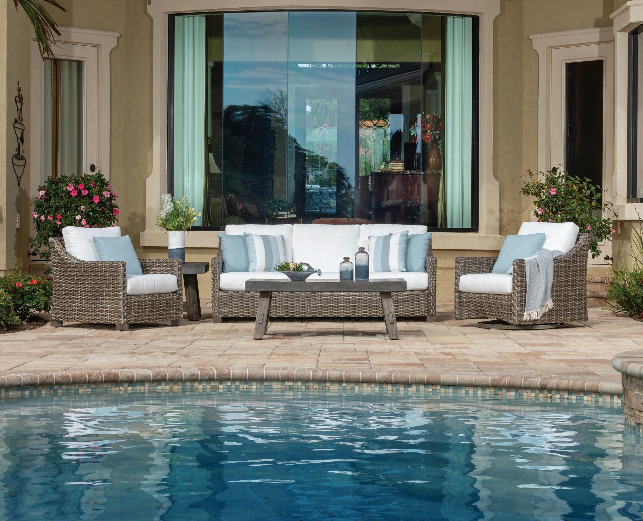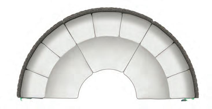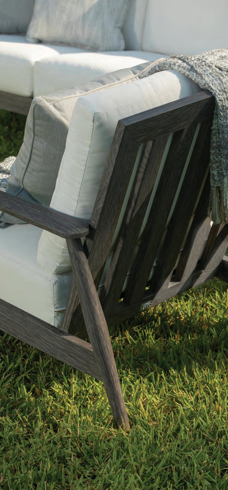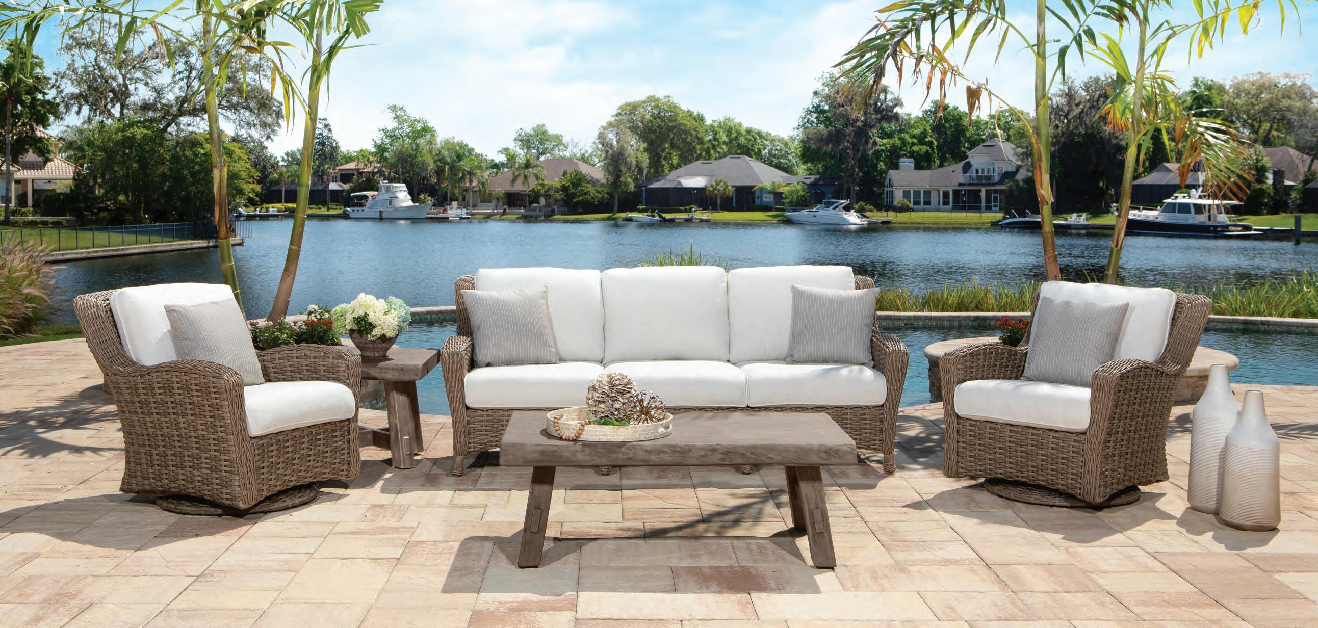 Upgrading seat cushions with reticulated foam allows water to run through the cushions resulting in faster drying times. Additionally, Sunbrella Rain fabrics, available by special order, are manufactured with a special barrier coating applied to the back of the fabric preventing water from penetrating into the cushion.