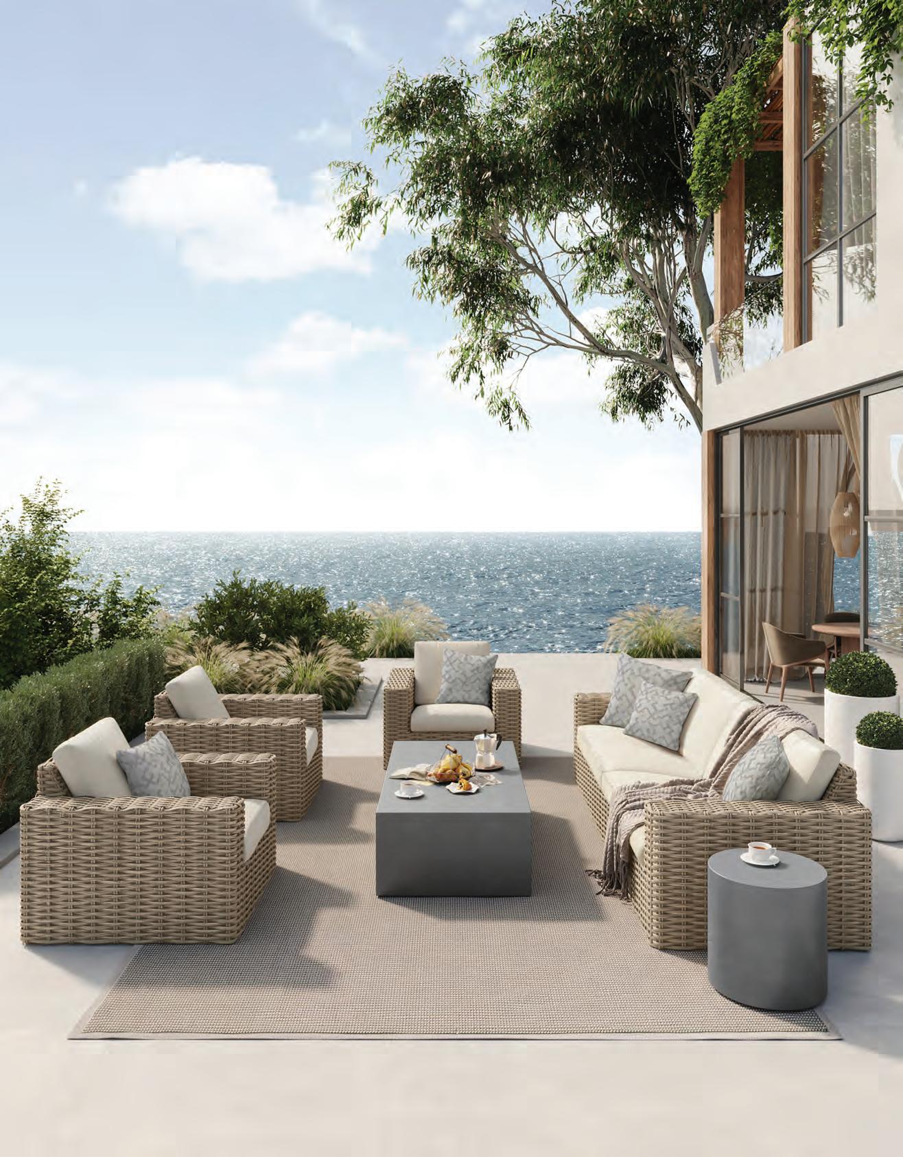 Mia, made with Eco Weave using 50% recycled ocean plastic, is now available in a new color - Barley. This cozy, eco-friendly collection pairs beautifully with our new Bellino seating tables or our Trevi tables in its newest color, Flax.
