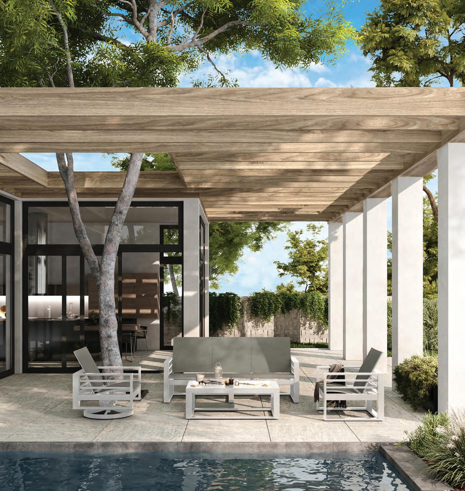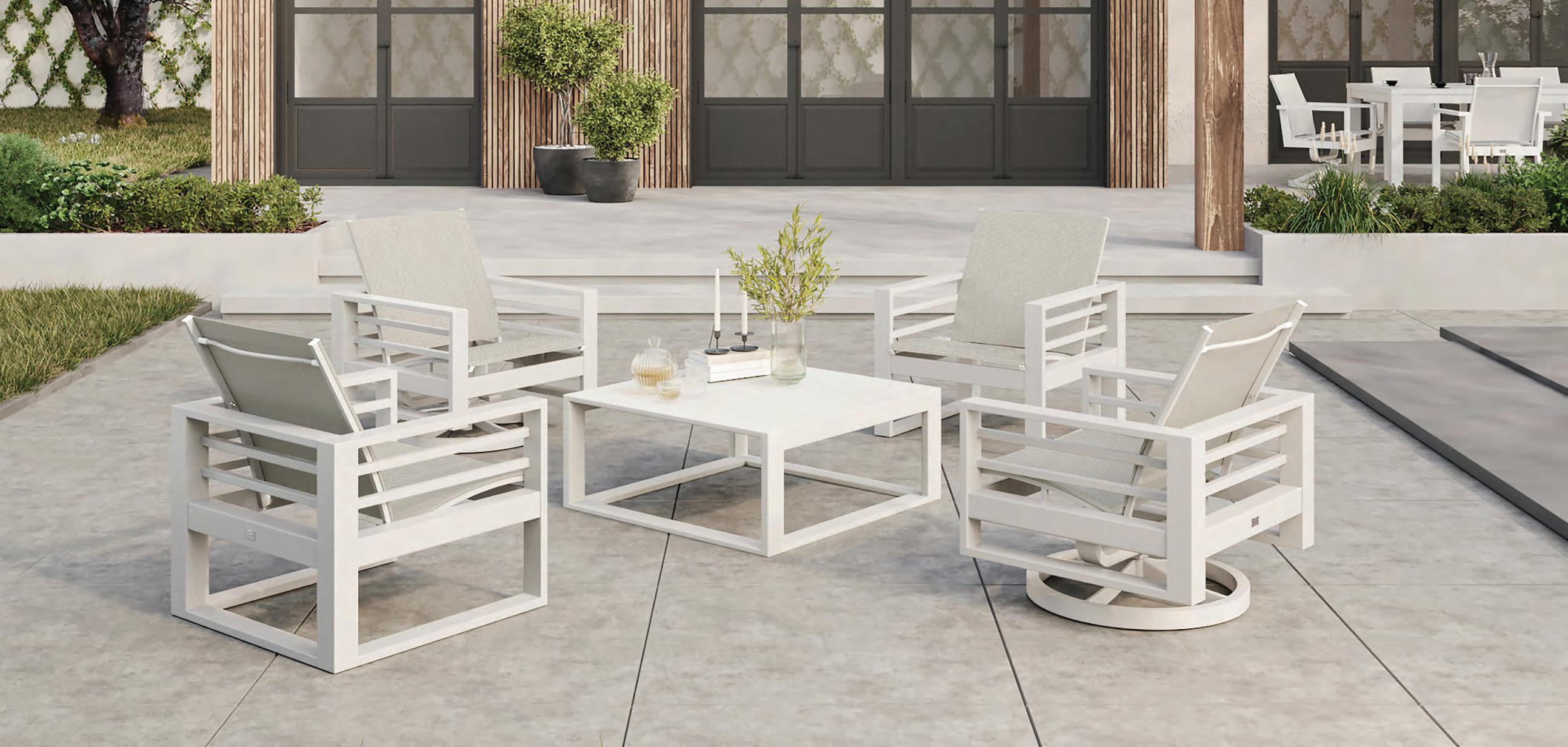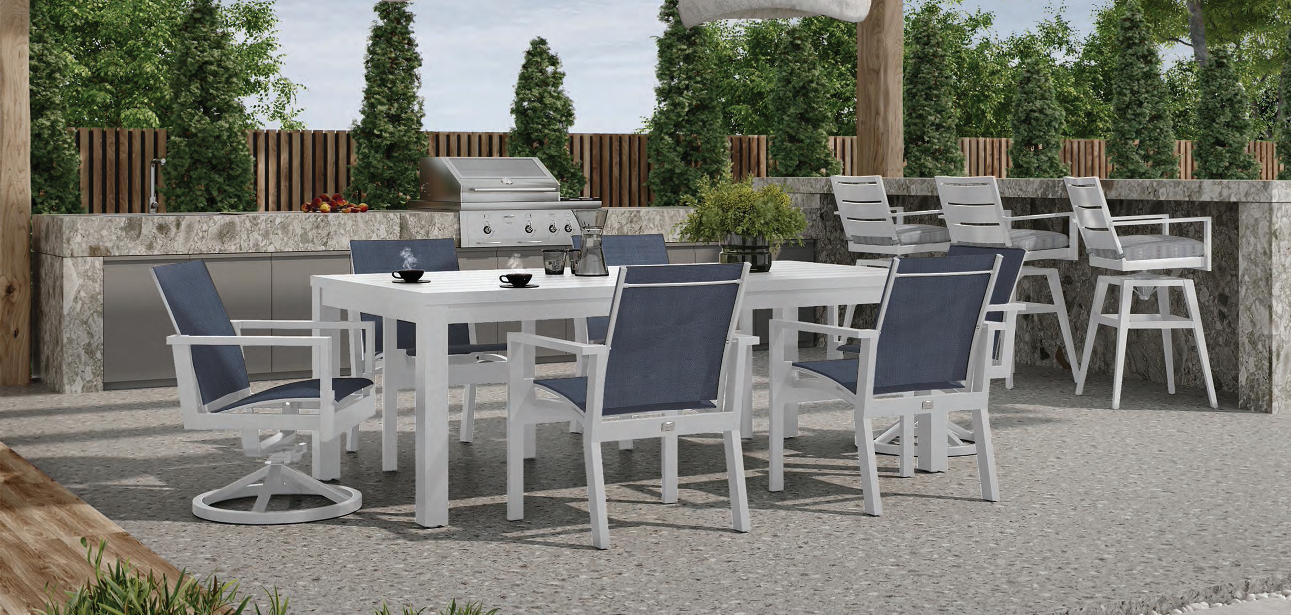 Modeled to complement our beloved Palermo Collection, we present the Palermo Sling Collection for 2023. Available in White or Graphite frames, this cushion-less collection is as comfortable and functional as it is stunning.