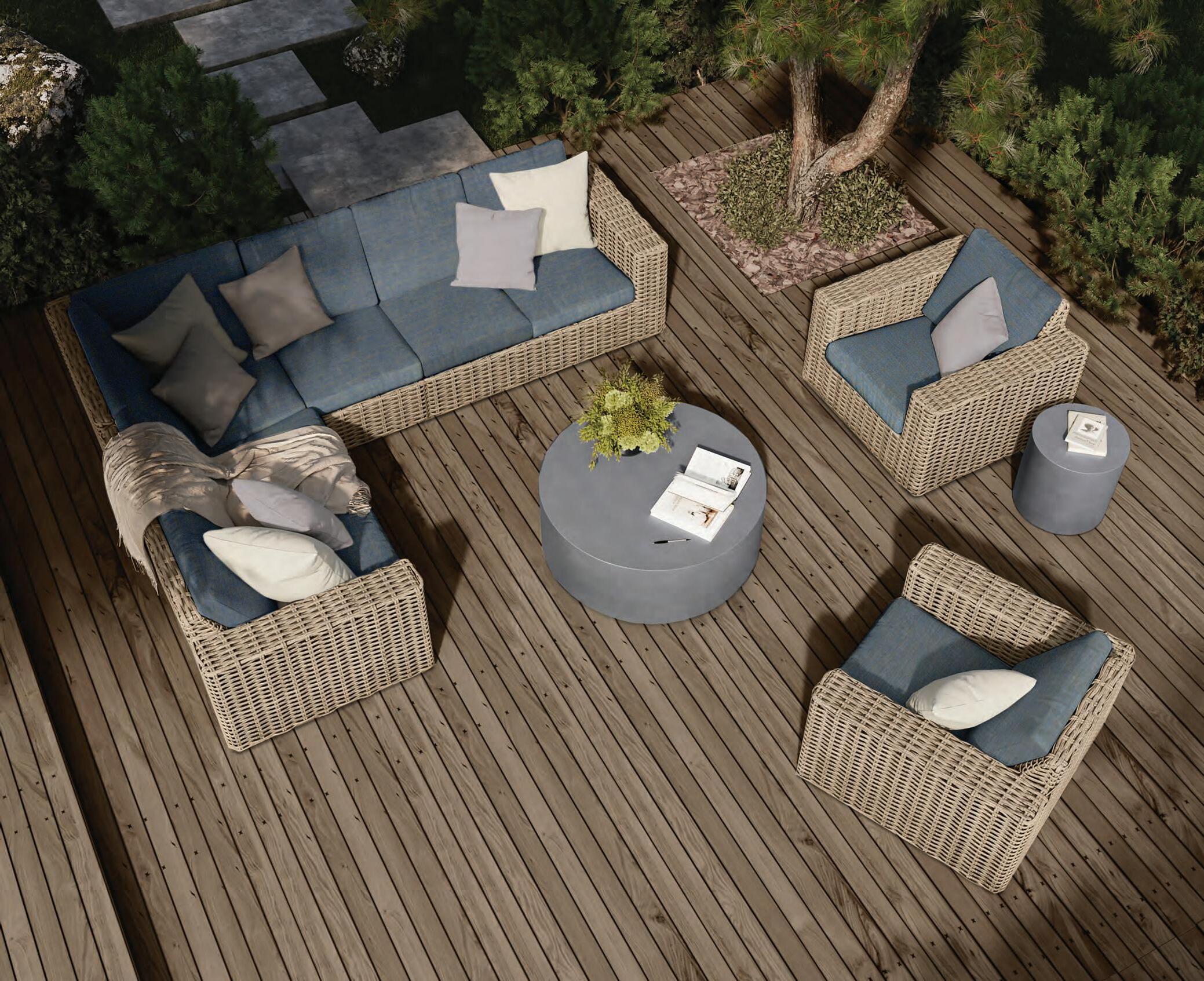 Not only is Ebel’s outdoor wicker a relief on the environment, but it’s also a breeze to maintain. This 100% weatherproof polyethylene weave allows for quick and easy cleaning with household cleaners.