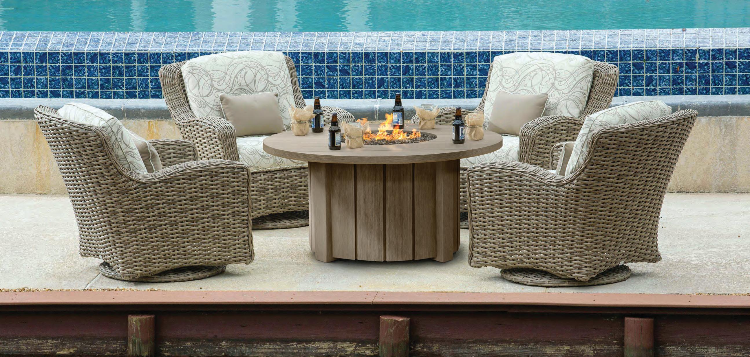 Our timeless Taos and Trevi fire pits are available in two new colors; White & Flax. The white fire pits complement the addition of White to our Palermo Collection while Flax pairs beautifully with our newest weave color, Barley.