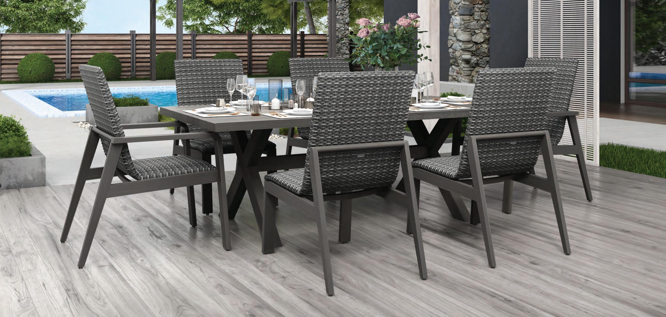 Create an elegant backyard and entertaining space with the Antibes collection. An open weave with a sleek, aluminum frame - this collection will stand the test of time. Chic yet classic and offered in Cushionless options as well. Both seating and dining pieces are available for a completely coordinated outdoor space. The Antibes collection is presented in two colors - Cocoa/Hickory and Smoke.