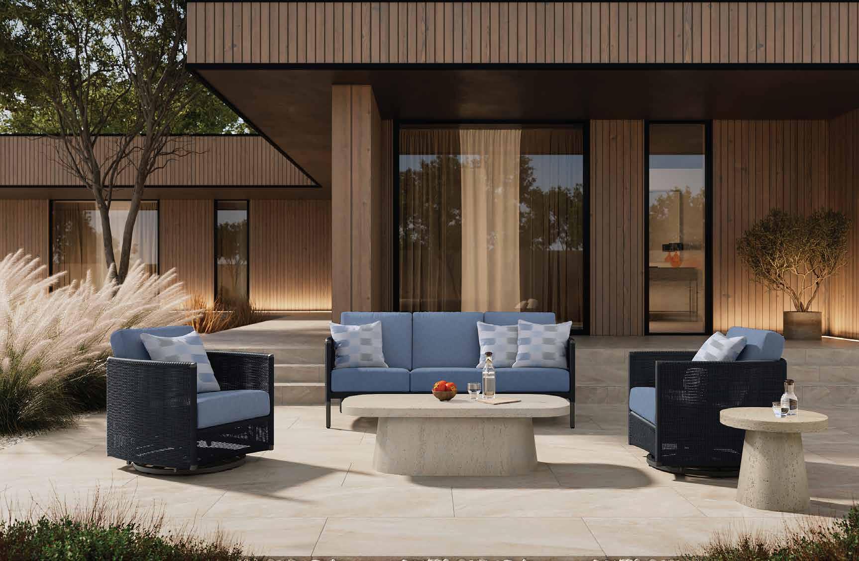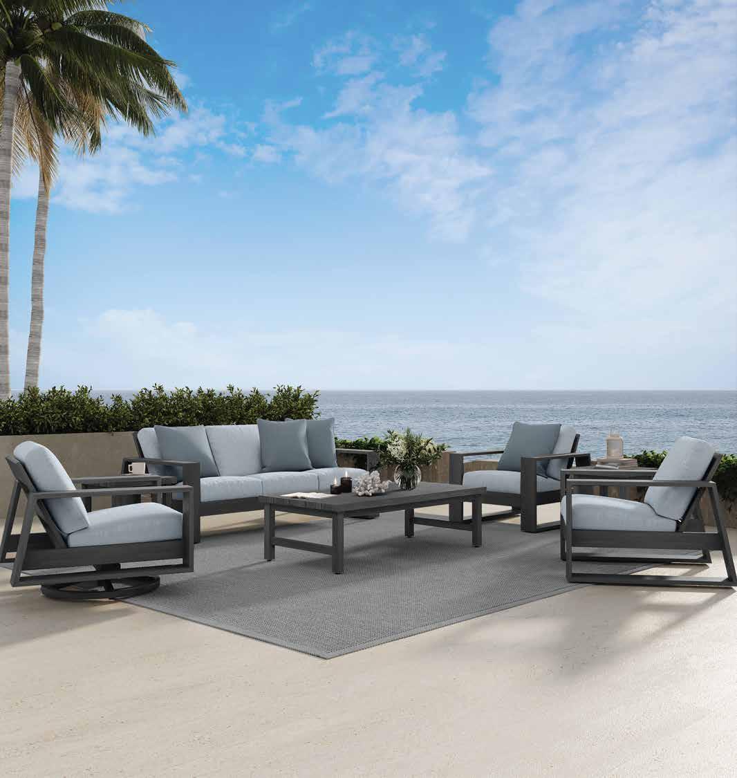 Nothing complements our furniture like premium quality cushions that look good and sit even better. All of our cushions are madeto-order in the USA in your choice of fabrics. With over one hundred stocked fabrics and hundreds more available on special order, creating your perfect look has never been easier.