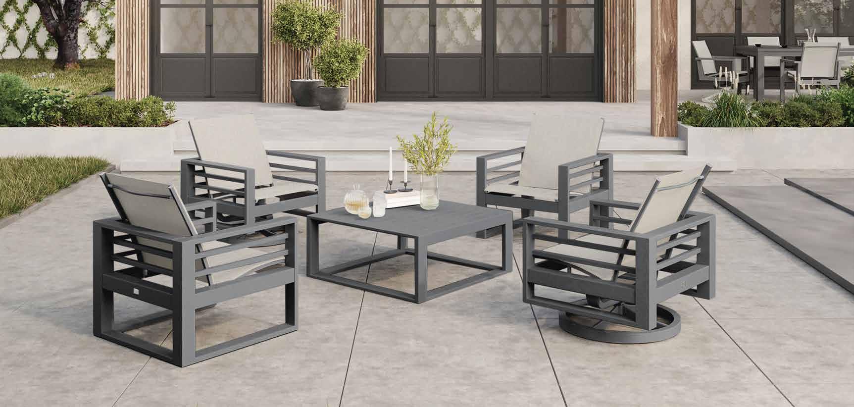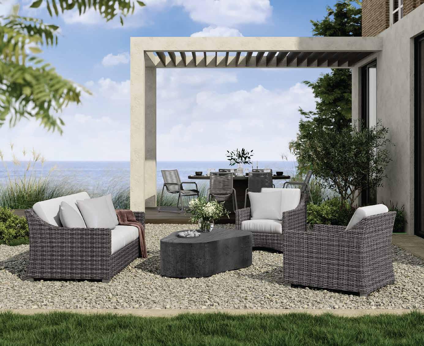 Enjoy Avallon – a casual, woven collection. This extensive line of sectionals, deep seating, and dining brings timeless style to any outdoor space. Avallon is available in Smoke and Hickory. Each intricate weave is full of natural tones and coordinates beautifully with countless fabrics, making it right at home, anywhere. New for 2024, Avallon now features a High Back Swivel Glider for ultimate comfort and relaxation.