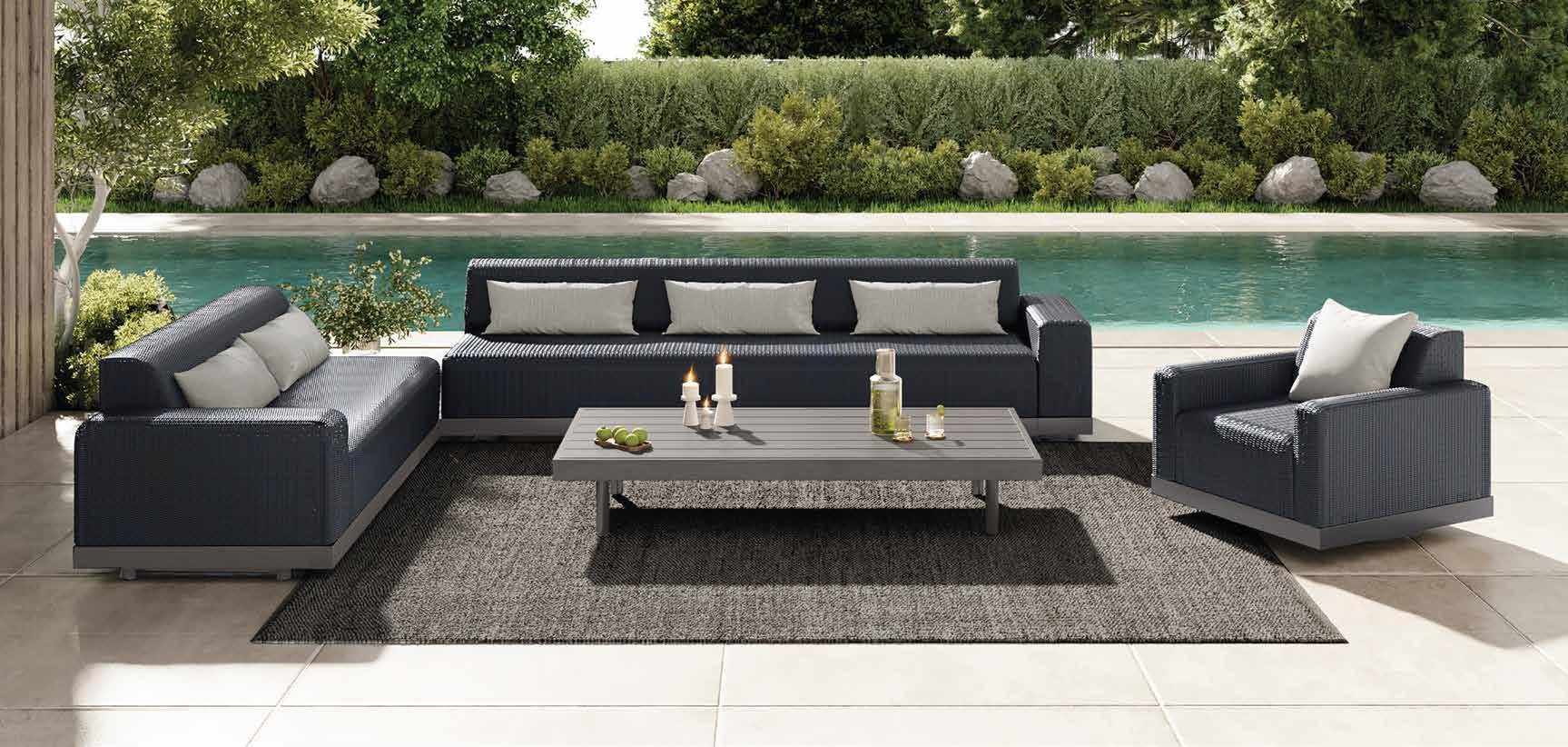 The Grande Collection boasts a low, sleek profile with built-in reticulated foam cushions, offering a modern twist on classic design.