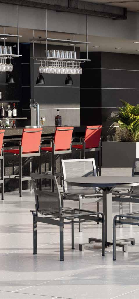 11 SHOWN IN PHOTO: CAFÉ CHAIR | 1235M Carbon Finish 36" SLATE CAFÉ TABLE | C3636SSLNU | 1800B BASE Char Top | Carbon Finish WIND RESISTANT UPGRADE Need additional weight for windy conditions? Allure's Wind Kit Set (11370WS), consisting of a pair of zinc-plated steel bars, adds an additional 5.66 lbs and easily attaches to the chair’s frame. Available in all finishes.