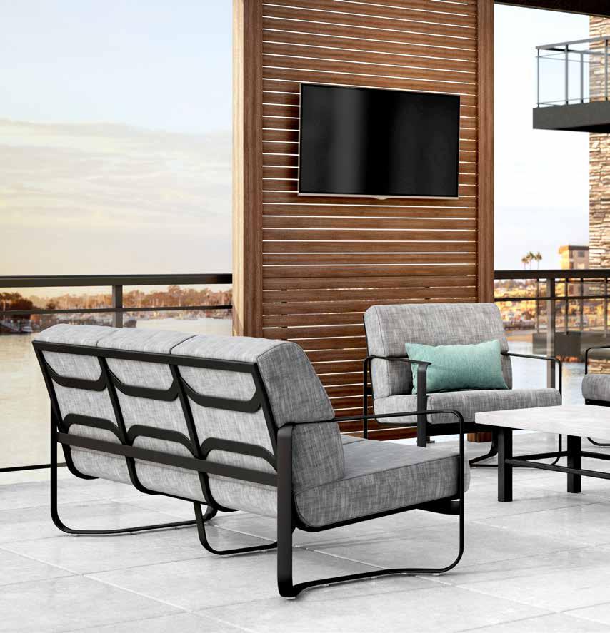 ELEMENTS LOVESEAT Element's DreamCore cushions mimic the frame's style to create a versatile, transitional look in all outdoor spaces.